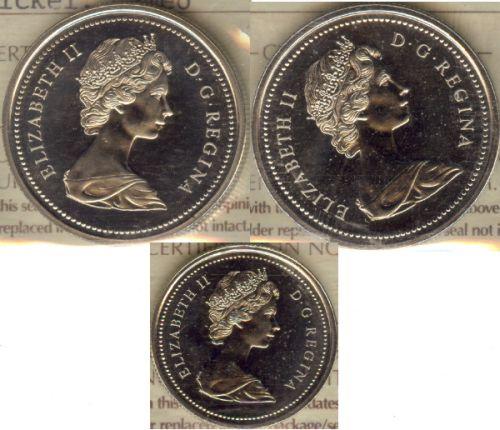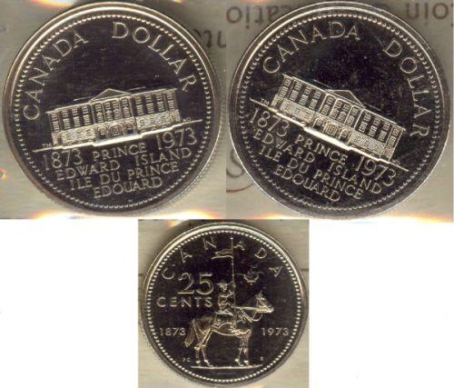 Lot of 3 ICCS certified coins, 25 Cents 1973 PL-65, 1 Dollar 1973 SP-64; Nickel, Cameo & 1 Dollar 1973 PL-65; Nickel.