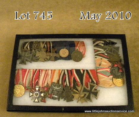 Lot of 3 Imperial German and WWII parade medal bars including Iron Crosses in various German states, medals, and orders. Very good condition. Est: $400 - $800