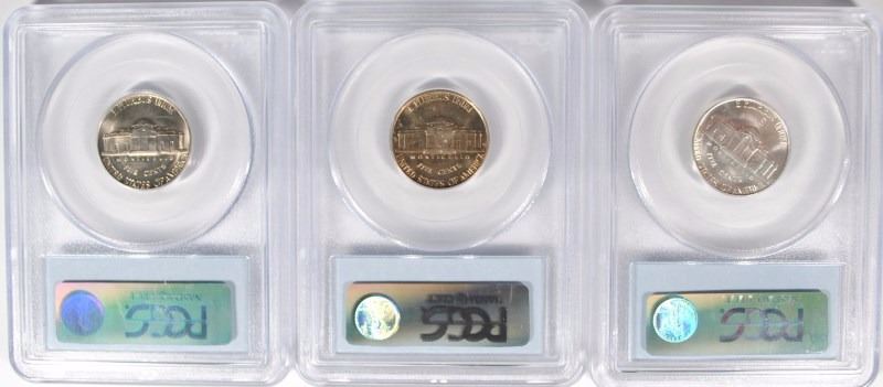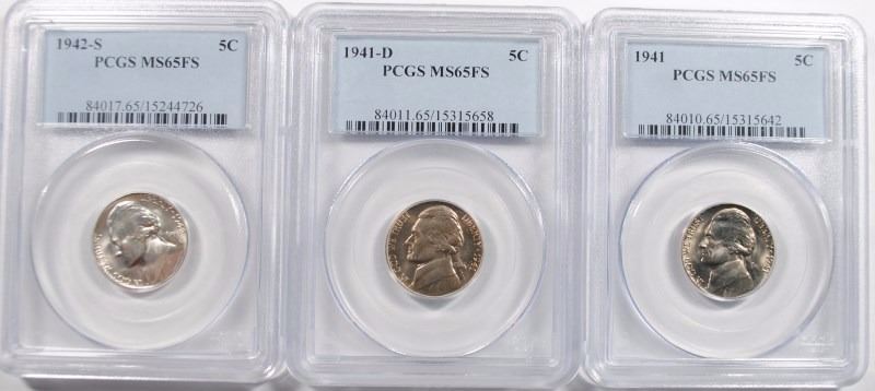 Lot of 3 Jefferson. Nickels PCGS MS-65 FS 1941,41-D, 42-S