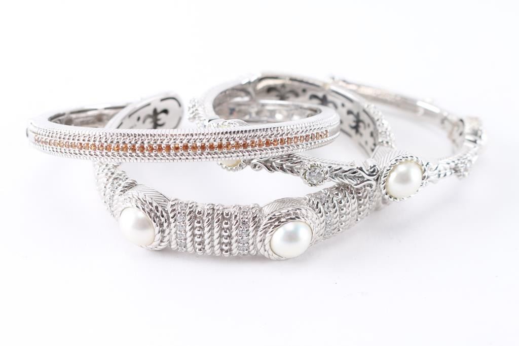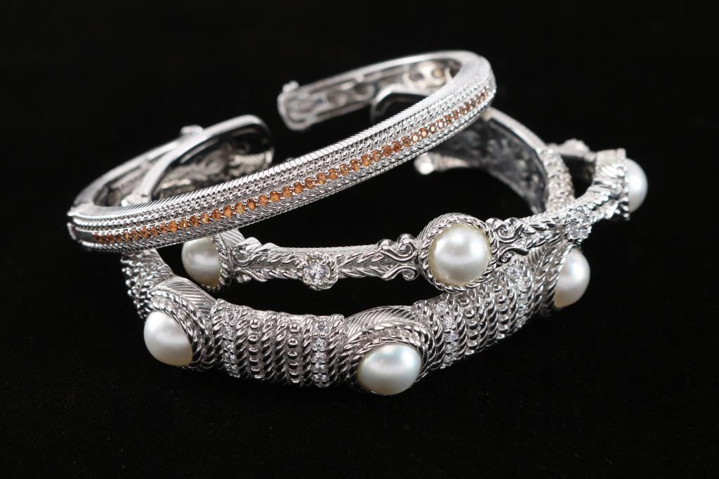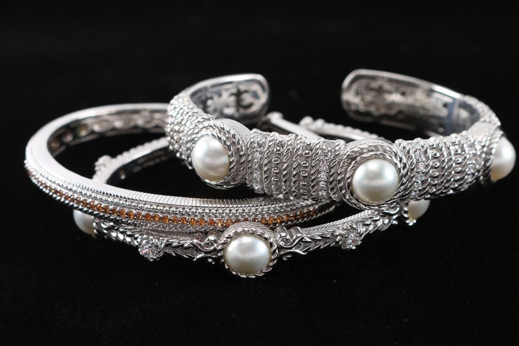 Beautiful cuffs in sterling silver, each different, with cubic zirconia, gemstone and/or pearl accents.