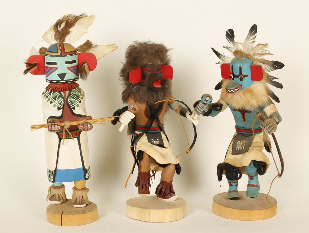 'Bear', 'Blue Warrior' by Gold tooth, and 'The Gatherer', unsigned. Approx 11" tall. Condition good to fair.
