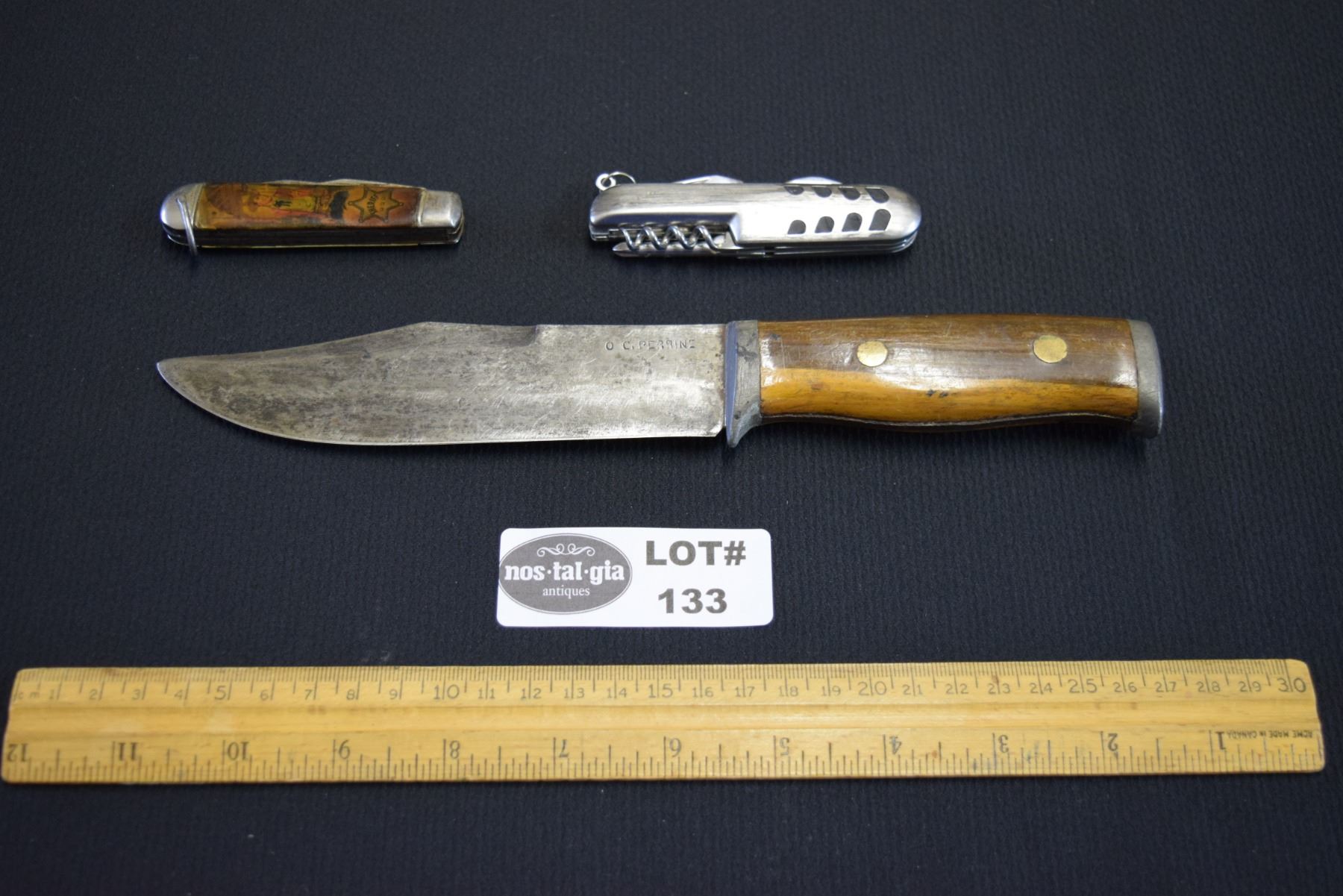2 Pocket Knives and 1 Carbon Steel Handmade Hunting Knife