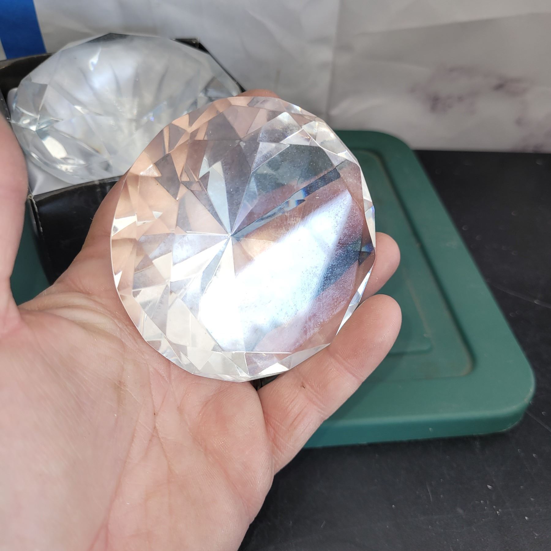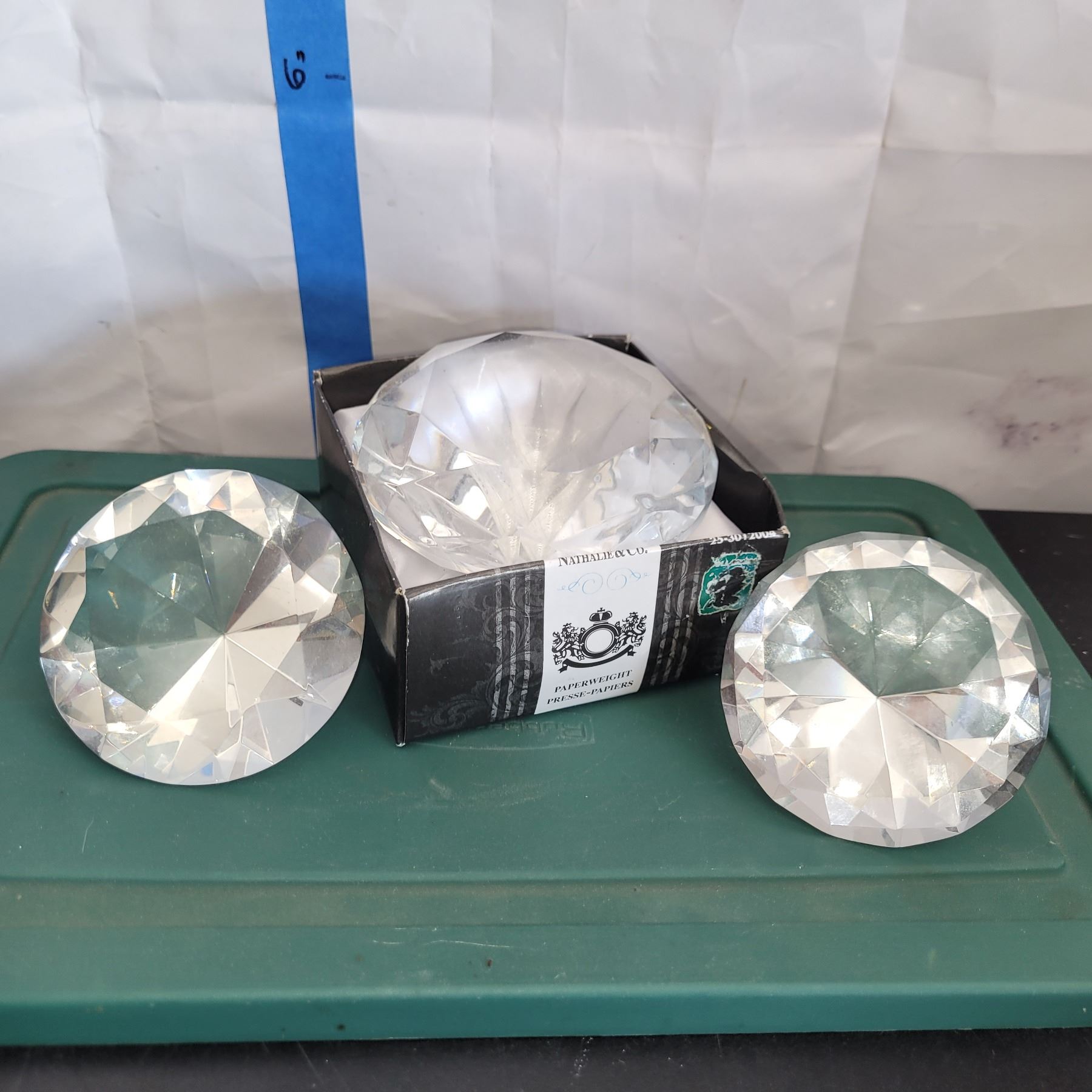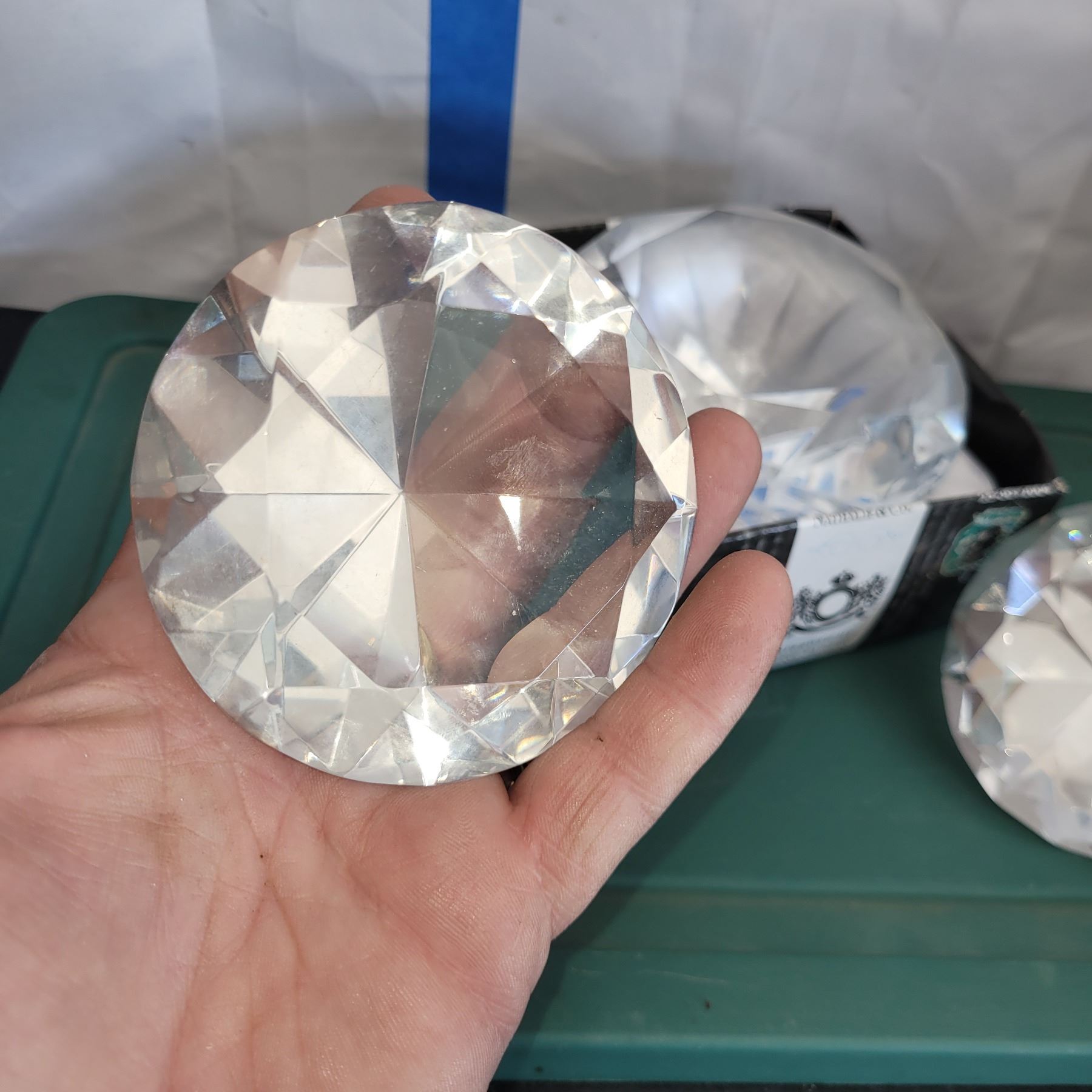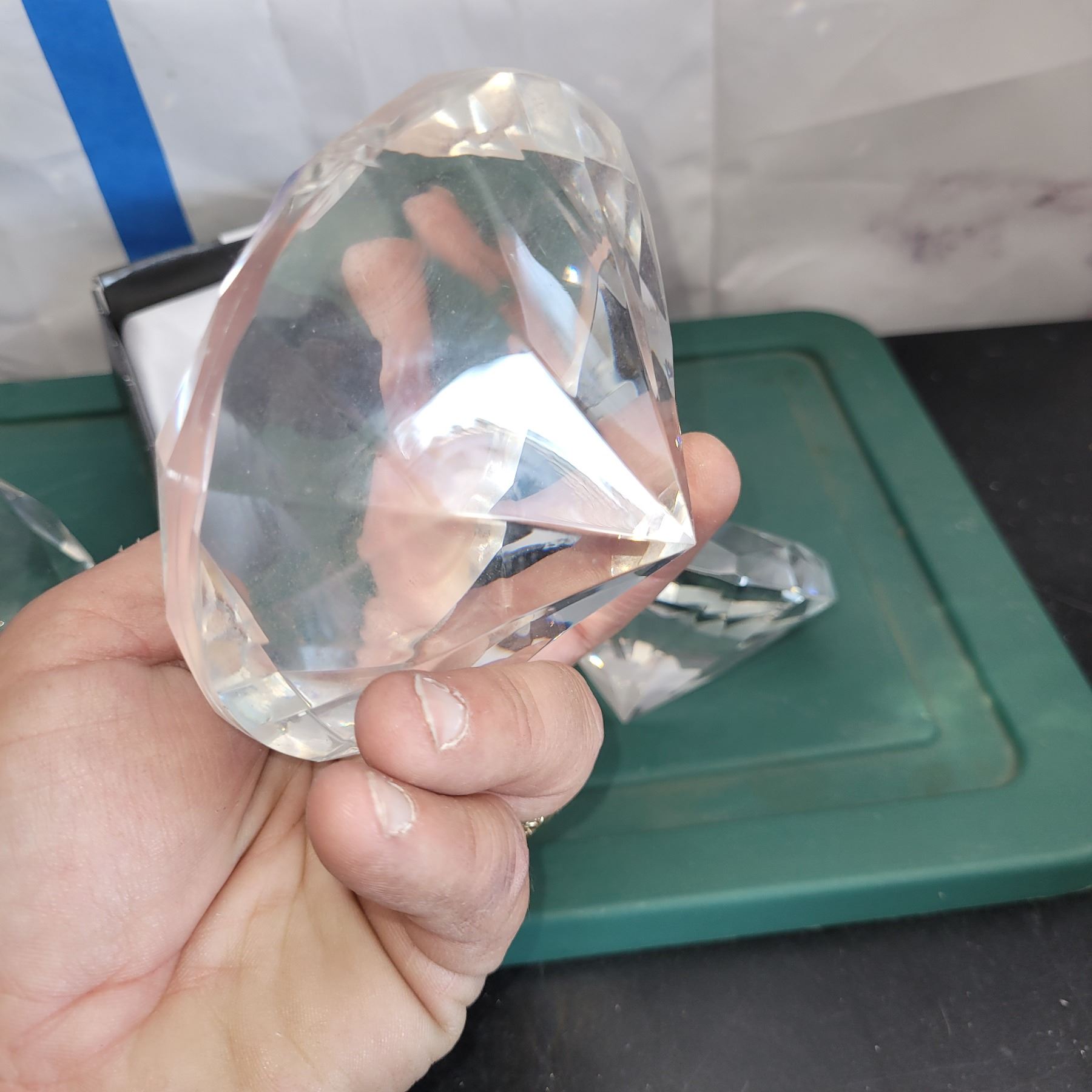 Lot of 3 Large Diamonds - 2 are Paperwieghts one in box is made of plastic