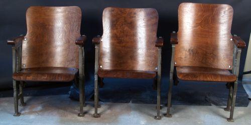 Lot of 3 Matching & Ornate, 1920's Theatre Seats Fresh Restoration to wood seats & backs