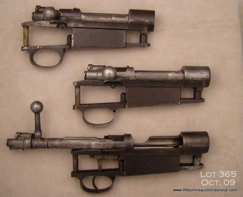 Lot of 3 Mauser actions, one CZ VZ-24 action, #DR20948 in fair to good condition, with only traces of the original finish; one CZ VZ-24 action, #E23018 in fair to good condition, with 30%-40% of the original finish which is driftingto a brown patina; one Turkish action, #180705, with 30%-40% of the original finish which is drifting to a brown patina. All actions only. Est. $150-$300.