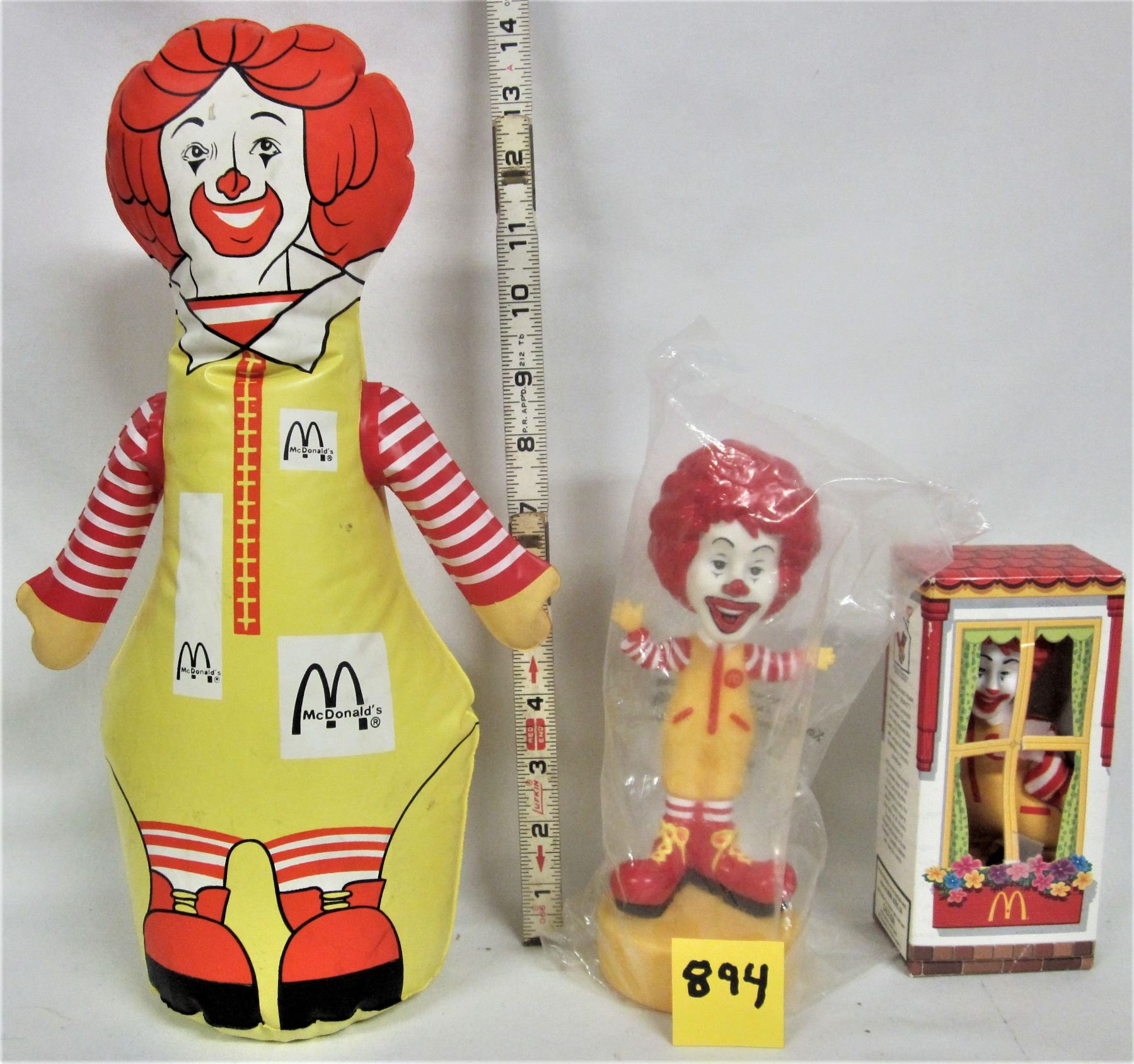 Vintage 13" inflatable with sand base, new sealed 8" bobble head, new boxed 2003 6" plush