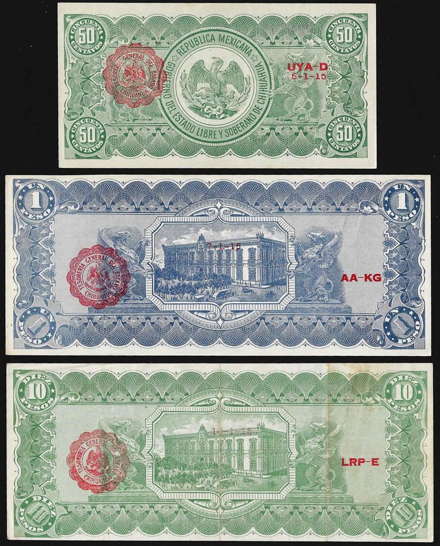 One Lot of (3) Miscelaneous El Estado De Chihuahua Mexico Notes.