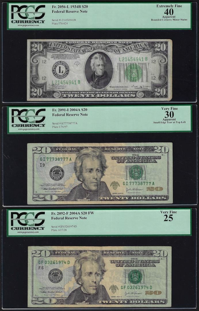 One Lot of (3) Miscellaneous $20 Federal Reserve Notes PCGS Graded. PCGS Graded.