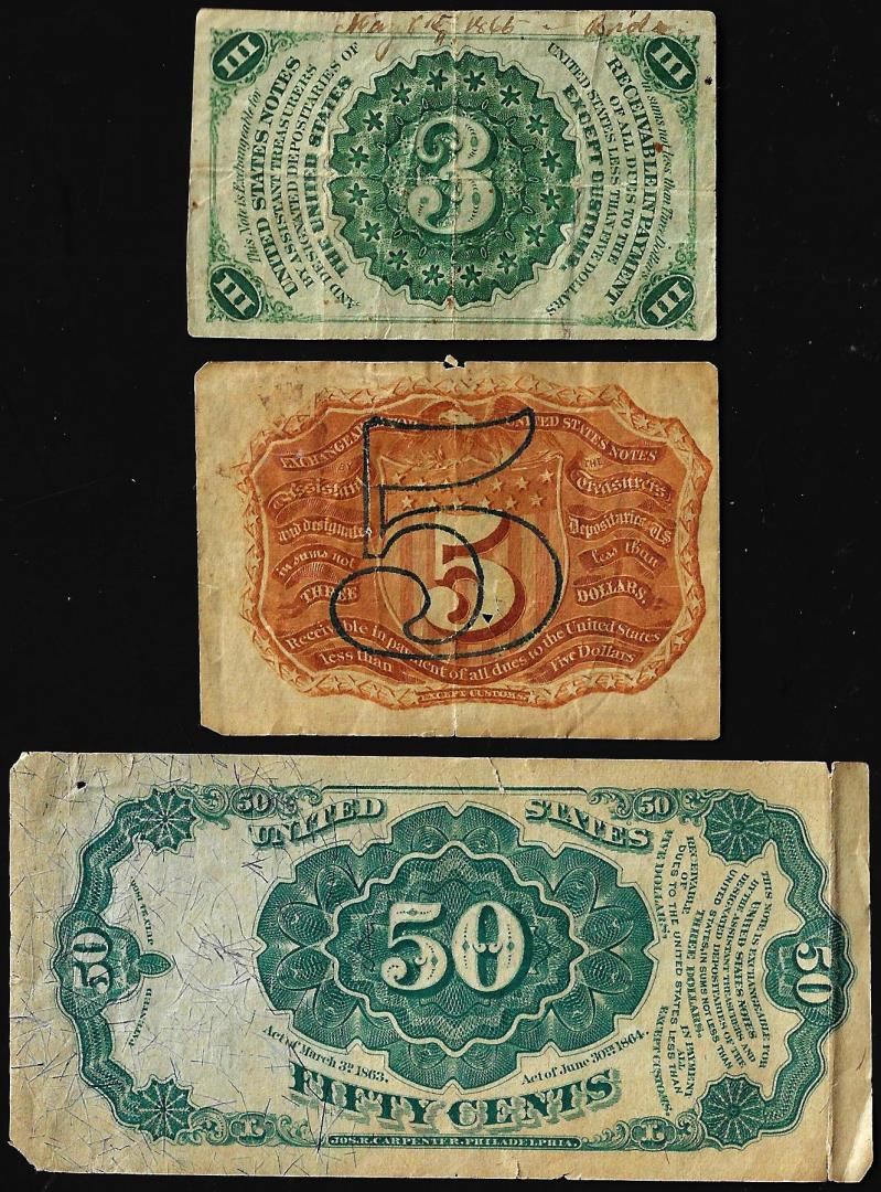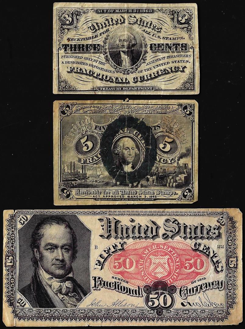 One Lot of (3) Miscellaneous Fractional Currency Notes.