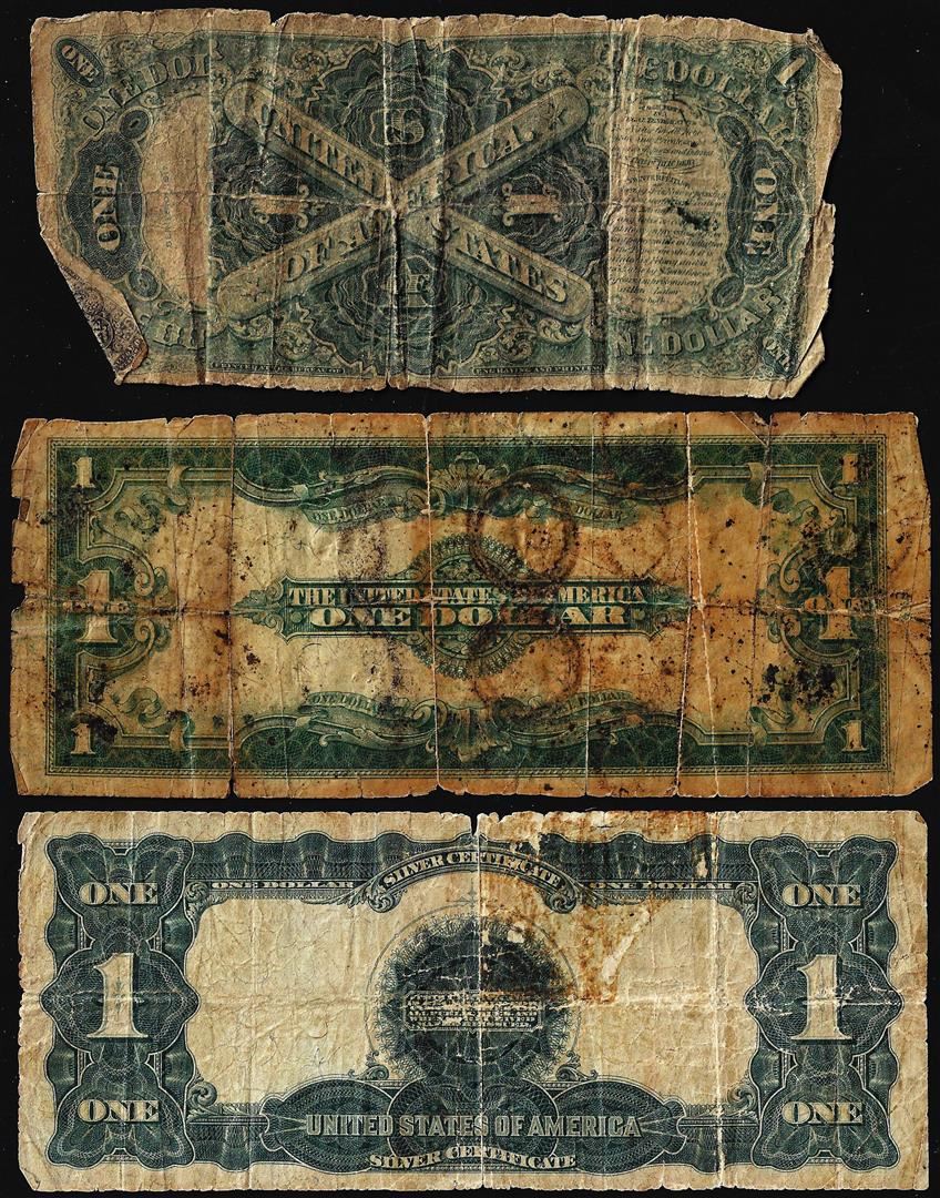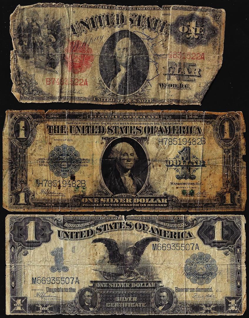 One Lot of (3) Miscellaneous Large Size $1 Silver Certificate & Legal Tender Notes.