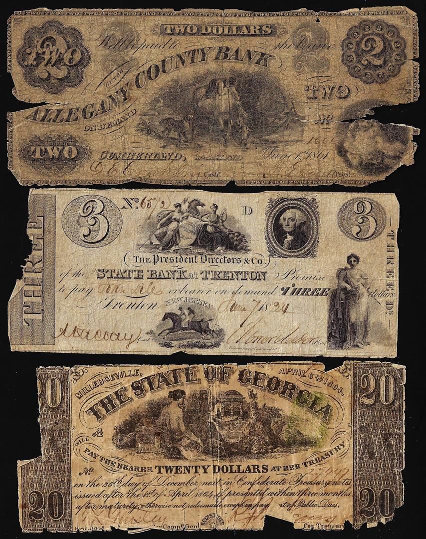 One Lot of (3) Miscellaneous Obsolete Currency Notes.