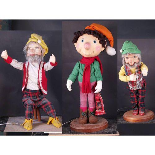 Lot of 3 Motion Displays: Boy w/ Lantern & 2 Old Men 1 seated and 1 standing Animated Store Window Attention getters