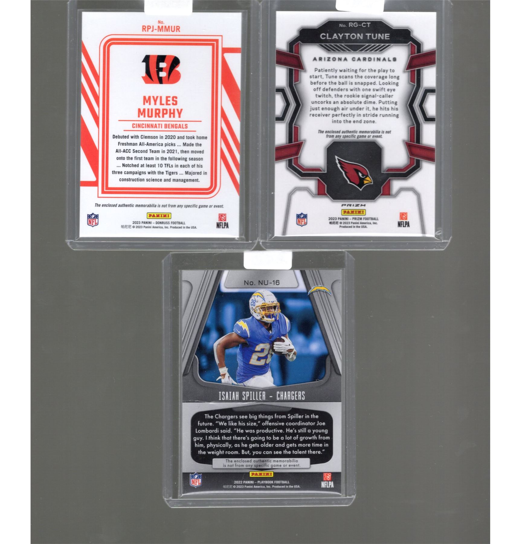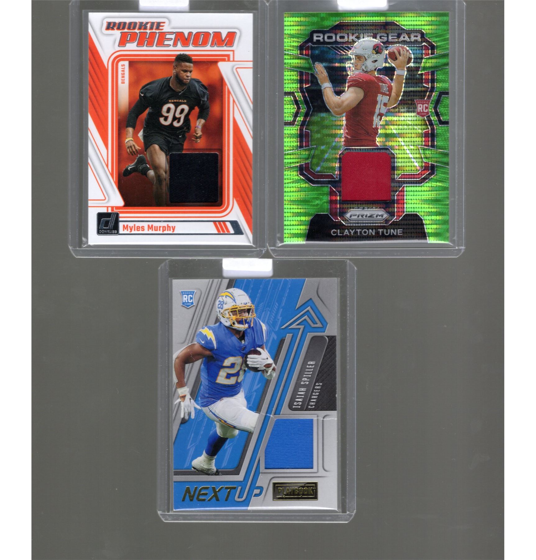 Lot of 3 NFL Rookie Patch Cards. Tune, Murphy, Spiller
