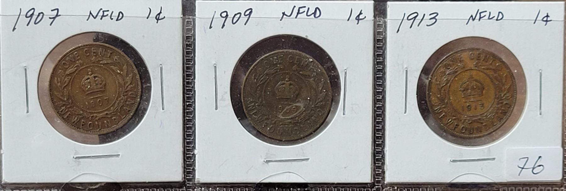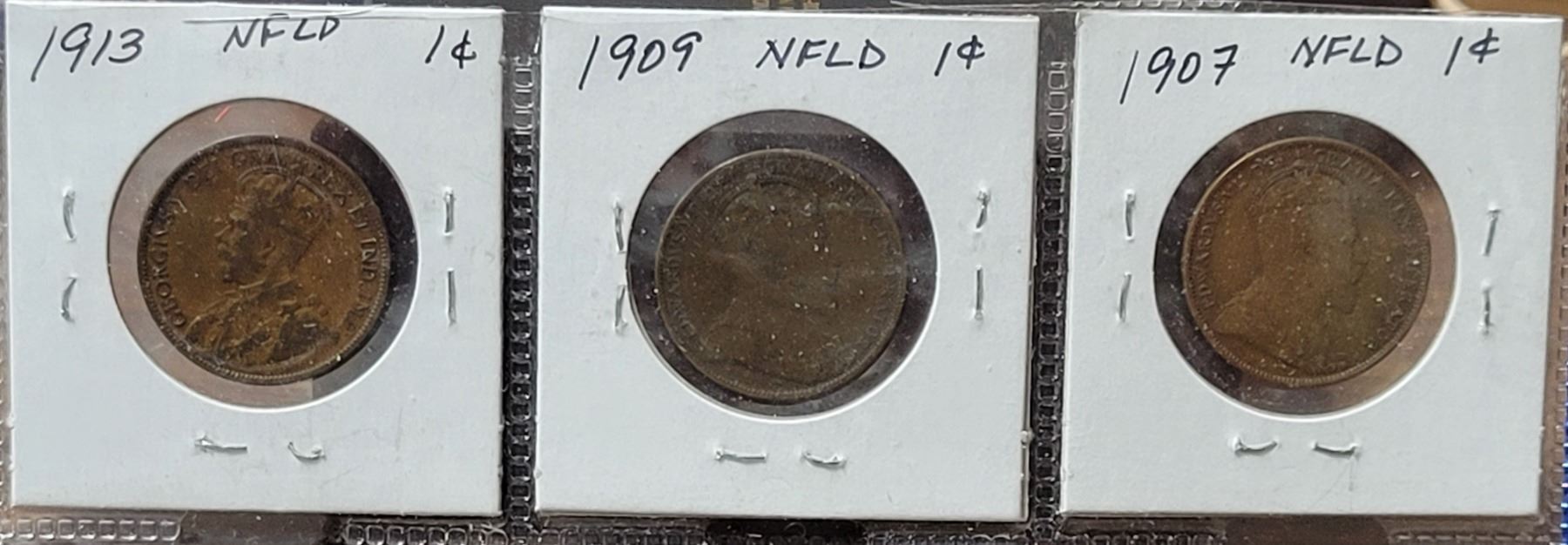 Lot of 3 NFLD 1¢: 1907, 1909, 1913