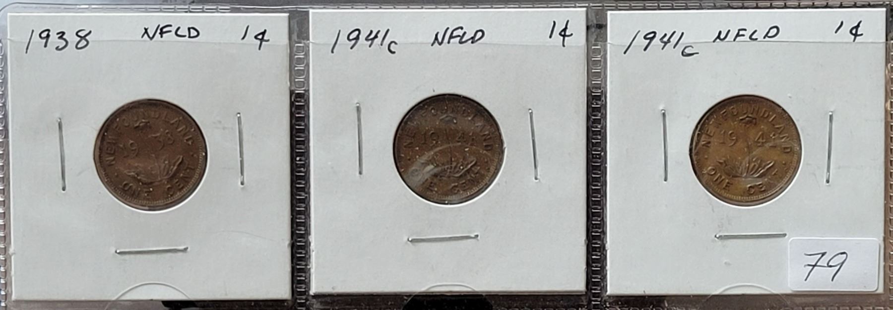 Lot of 3 NFLD 1¢: 1938, 1941c (x2)