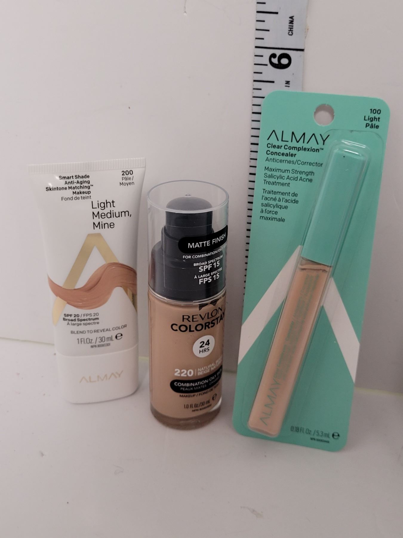 Lot of 3 New Make-Up | Almay Pale/Medium | Revlon Natural Beige | Concealer Light | On Choice
