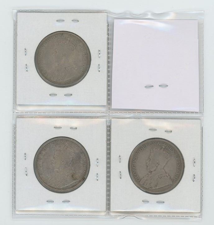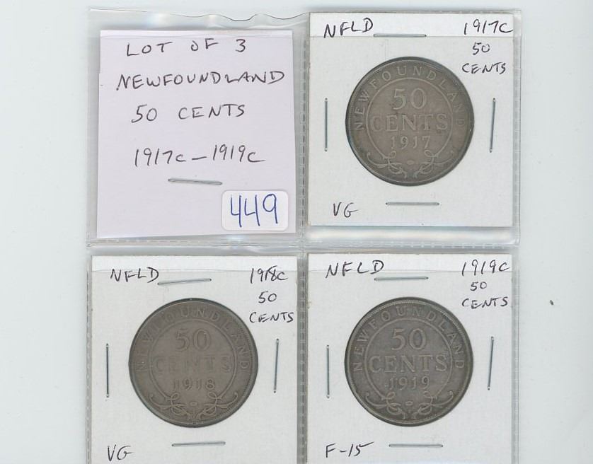 Lot of 3 Newfoundland 50 cents: 1917c VG-8; 1918c VG-8; 1919c F-15