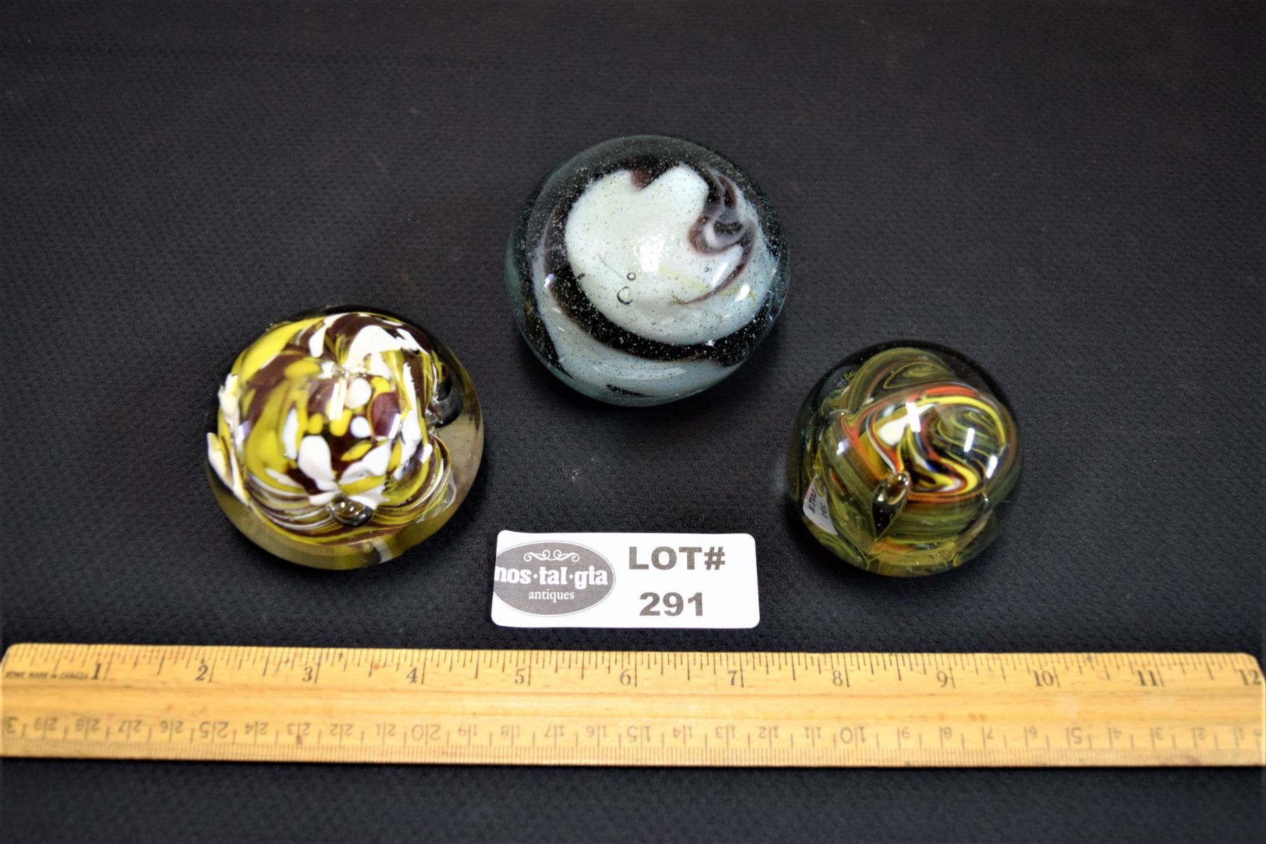 Lot of 3 Paperweights includes 2 Multicolour and 1 Brown/Milkglass Swirl