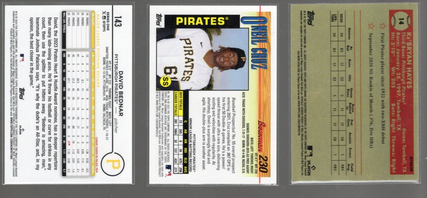 Lot of 3 Pirates Cards Ke'Bryan Hayes Rookie Refractor, Cruz, Bednar