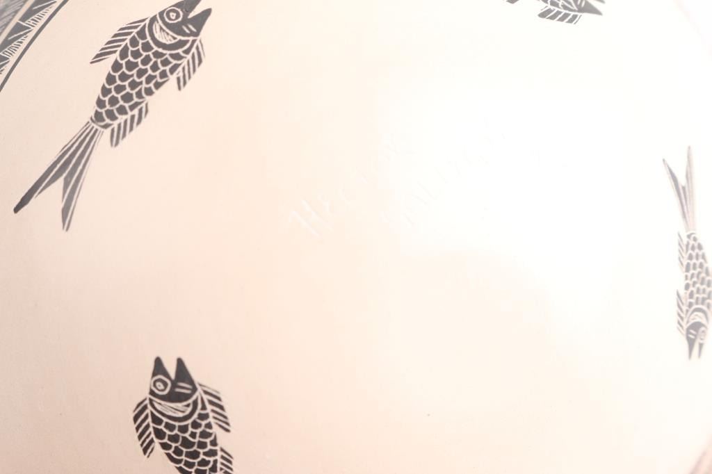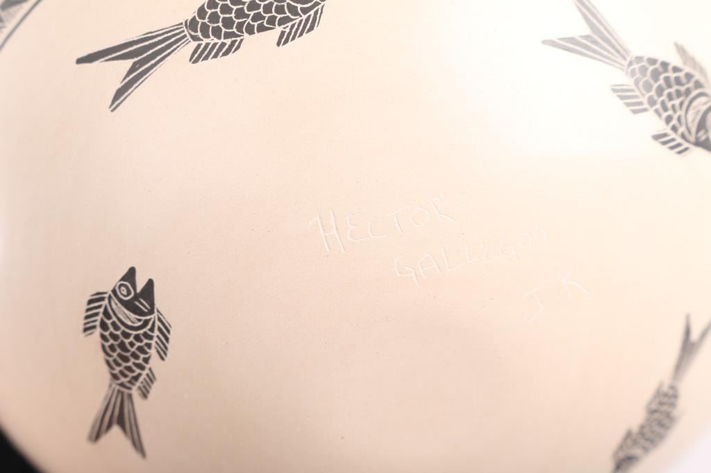 (1)Animal themed pot all black on tan base measures 6" signed Hector Gallego