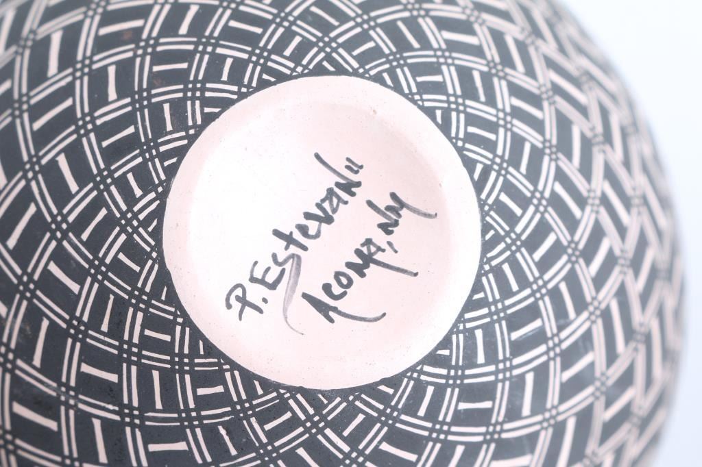 (1) Small geometric pot signed P. Estevan Acoma measures 4"