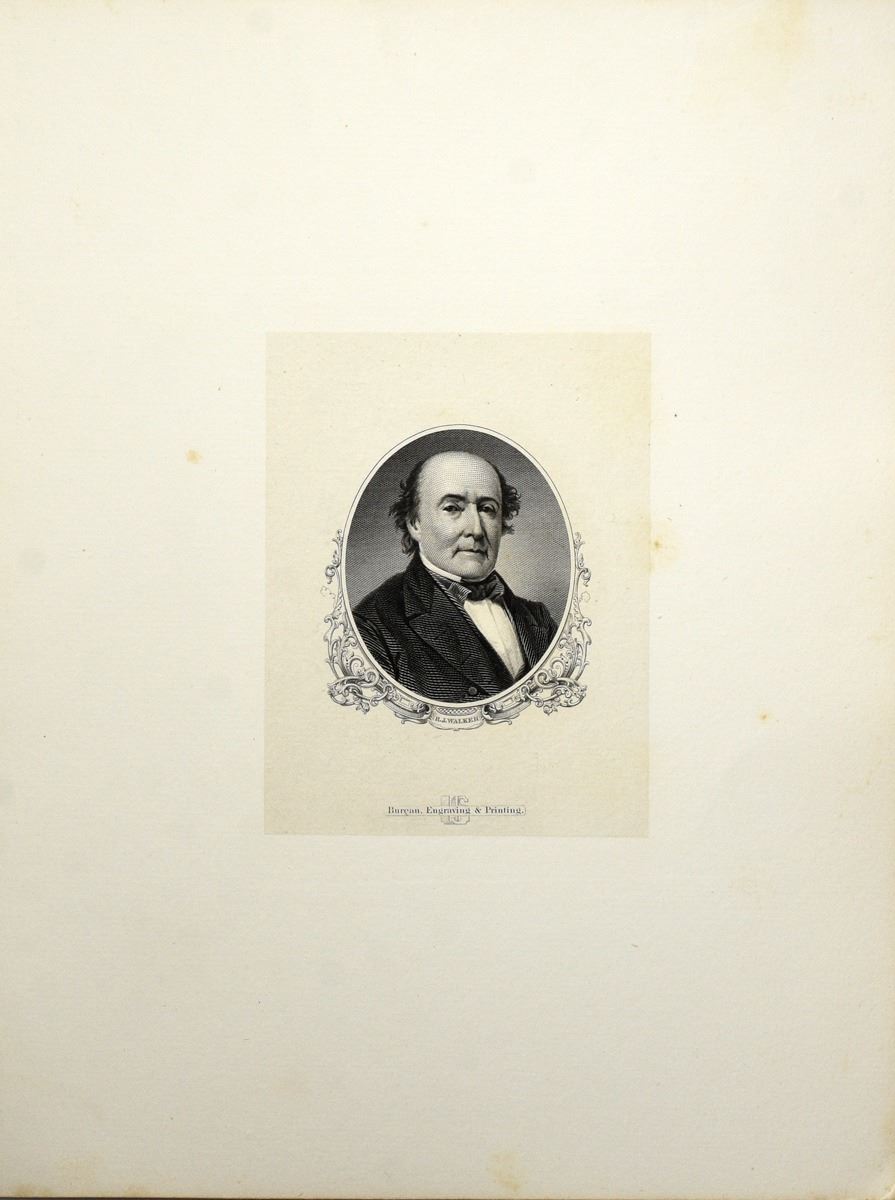 Lot of (3) Portrait Vignette Die Proofs. All printed on India paper and mounted to wide margin card. Vignette of Robert Walker, Secretary of the Treasury from 1845-49, Printed by the BEP used on the 25 cent 5th Issue Fractional Currency. Hon. S. P. Chase with NBNC imprint and seen used on the 1862 One Dollar Legal Tender Notes, 1918 $10,000 FRN's and more recently the $10,000 small-size notes of 1928 and 1934. Lastly a B.E.P. imprint on a General N. Greene portrait.