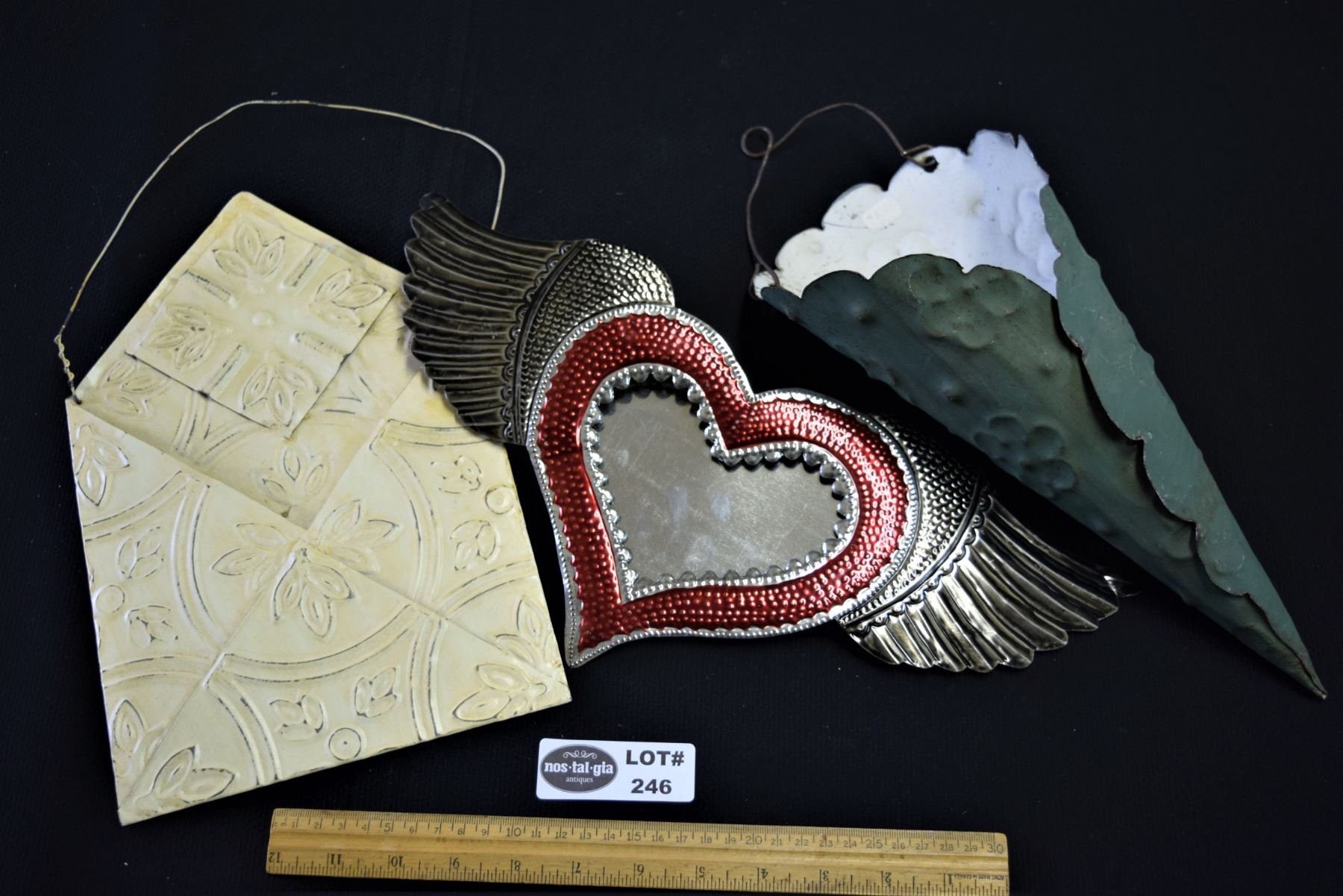Lot of 3 Pressed Tin Wall Hangings