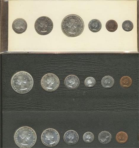 Lot of 3 Proof-like sets; 1959 in original white cards with broken cello. Silver coins are lightly toned and some pieces have some CAMEO contrast