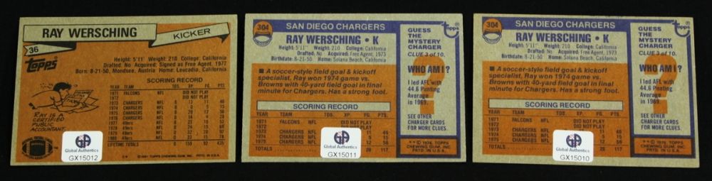 All 3 cards have been hand-signed in blue felt-tip pen by Ray Wersching. Autographs each include a Global Authentics (GA) hologram for authenticity purposes.