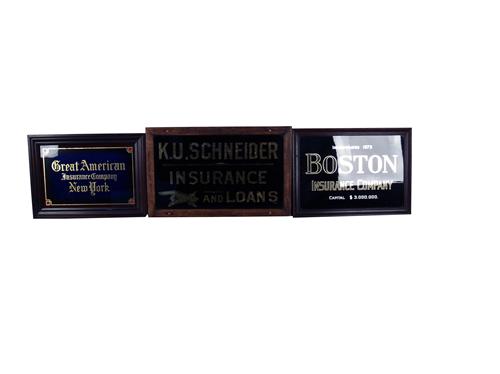 Lot of 3 Reverse Glass Insurance Signs:    Great American N.Y.  Boston Ins. Co.