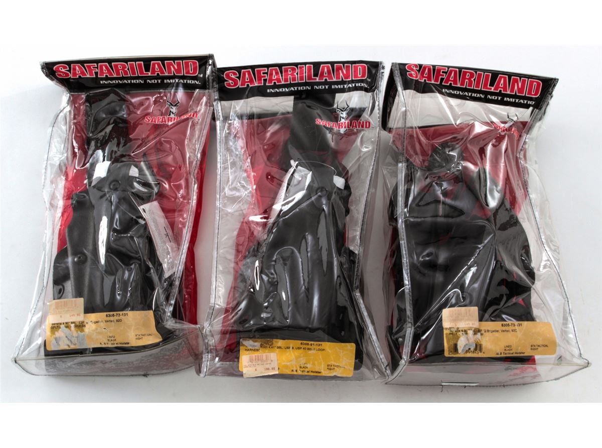 Lot of Three (3) Safariland Tactical Holsters, with belt loop harnesses, for Beretta and H&K. All brand new in original packaging. Retail @ $145.95/each. Est.: $250-$300/lot. (Field Time)