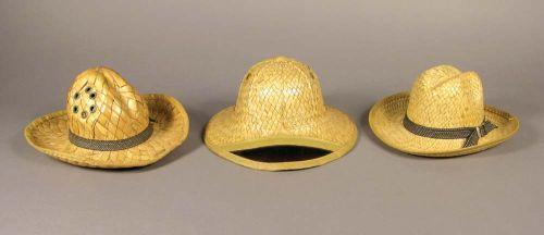 Lot of Three Salesman Sample Straw Hats. Excellent condition. Aprox. 6 inch diameter.