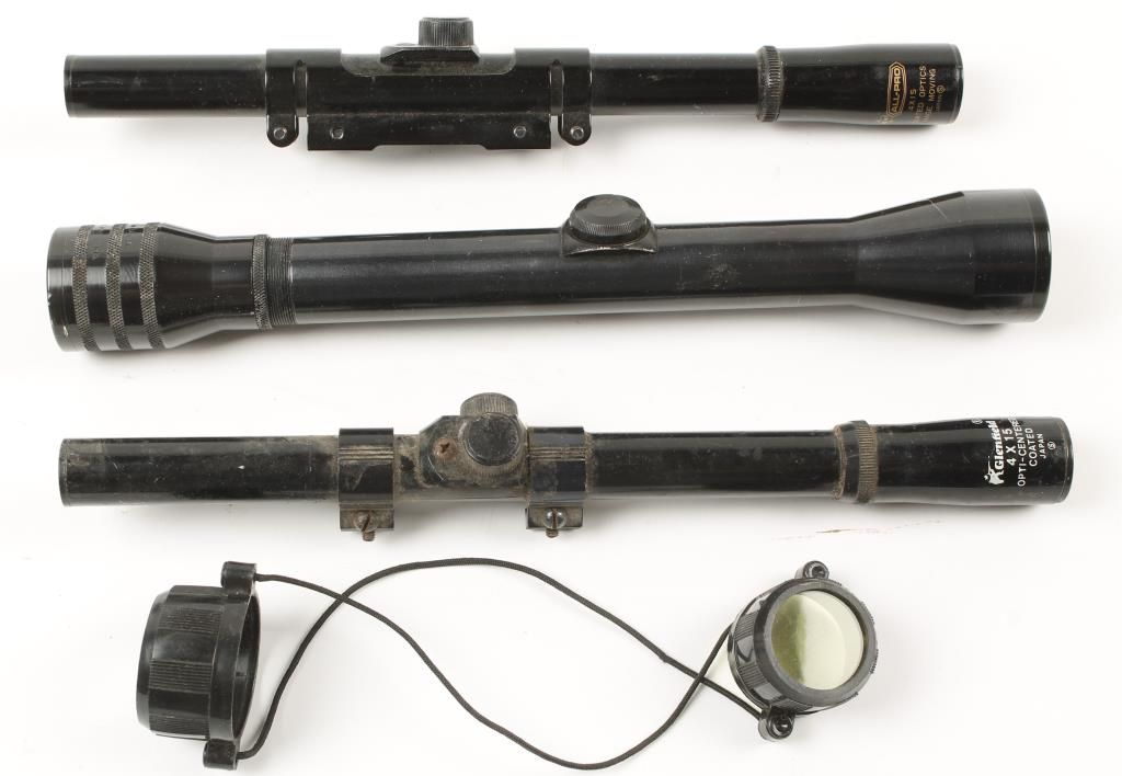 Includes Redfield Bear Cub 4X scope, Glenfield 4X15 scope and Kmart All-Pro 4X15 scope.
