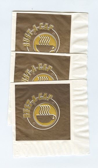 This is a lot of 3 prop "Bust-A-Cap" napkins screen used in the Quentin Tarantino film "Jackie Brown." These items are accompanied by a letter of authenticity from Star Wares.