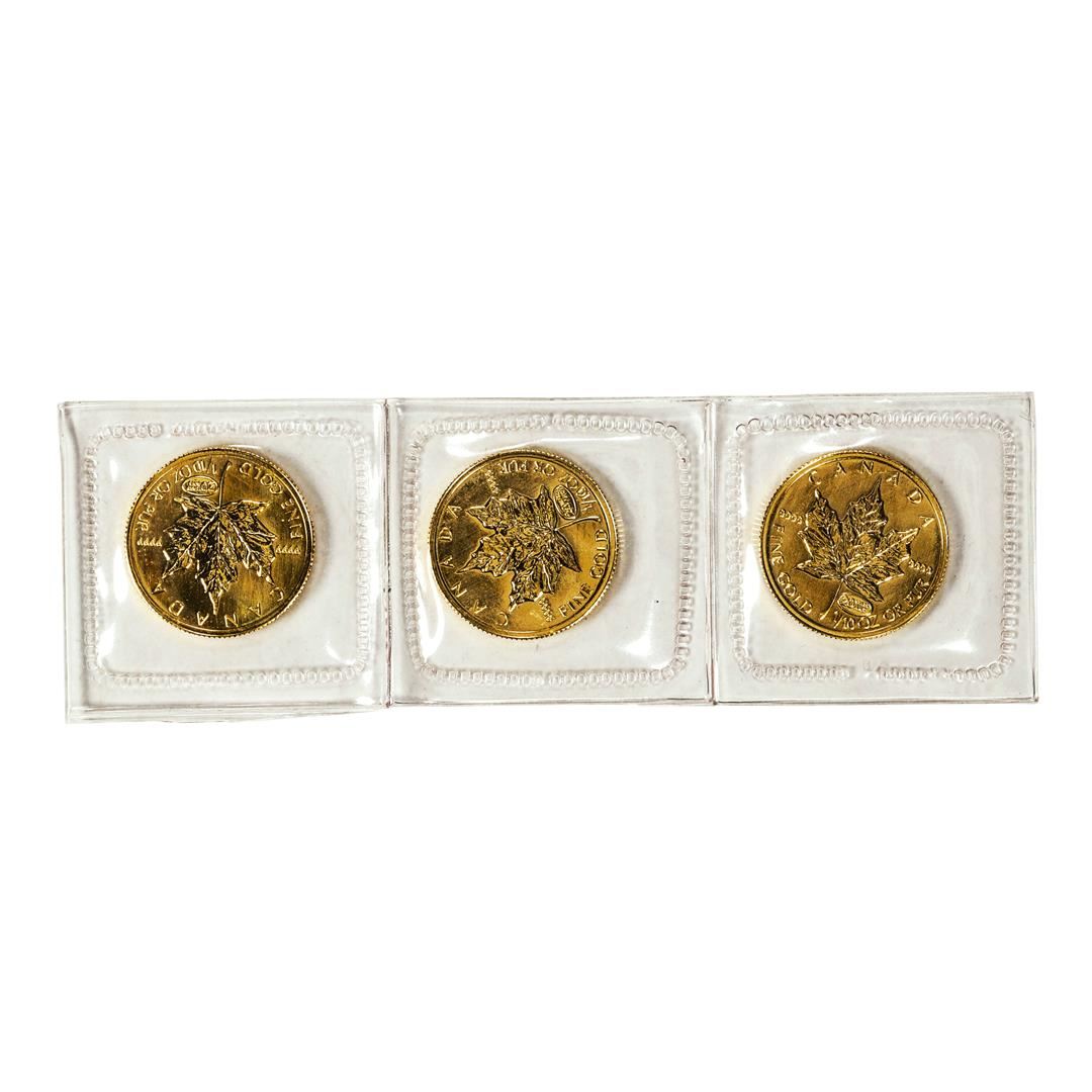 One Lot of (3) Sealed 1999 Canadian $5 Maple Leaf Gold Coins.