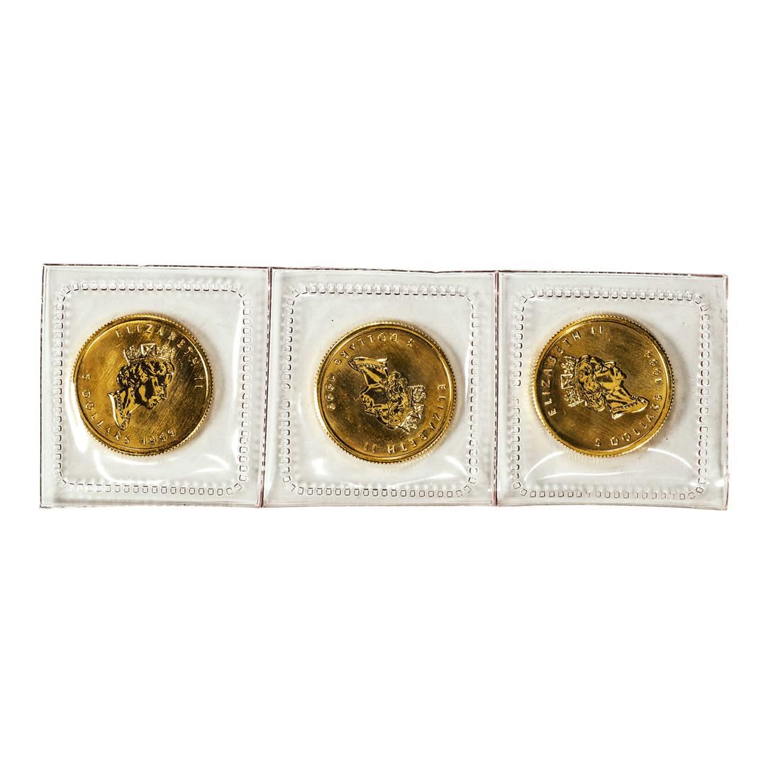 One Lot of (3) Sealed 1999 Canadian $5 Maple Leaf Gold Coins.