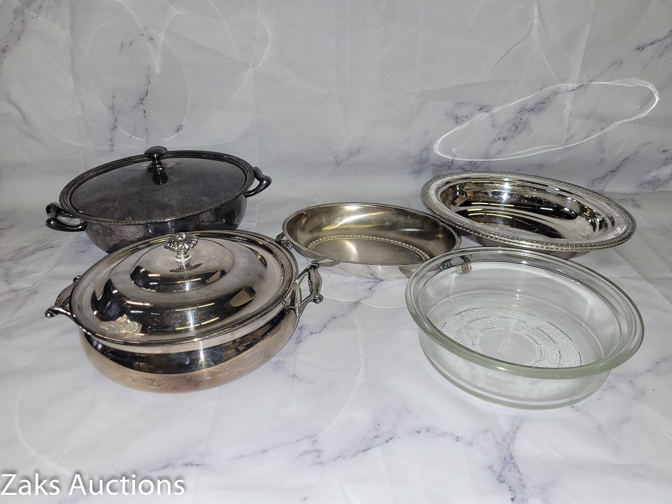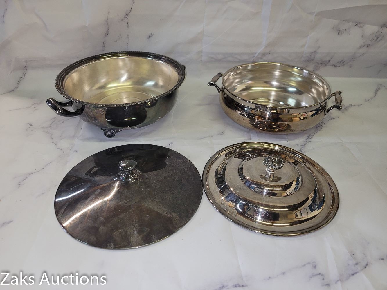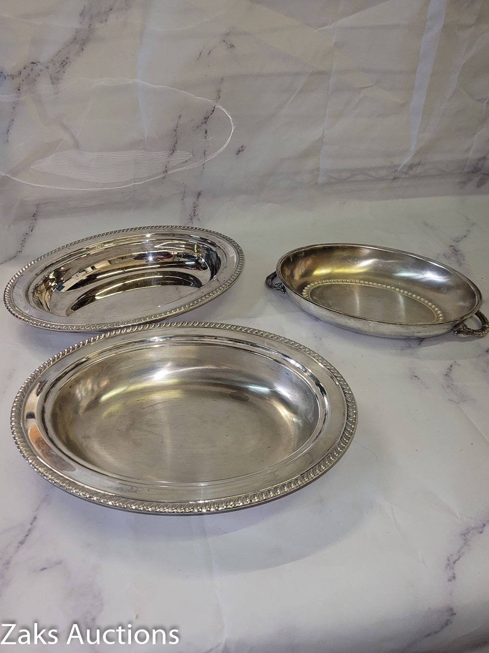 Lot of 3 Silver Plate Covered Serving Dishes, Primrose, Viking +