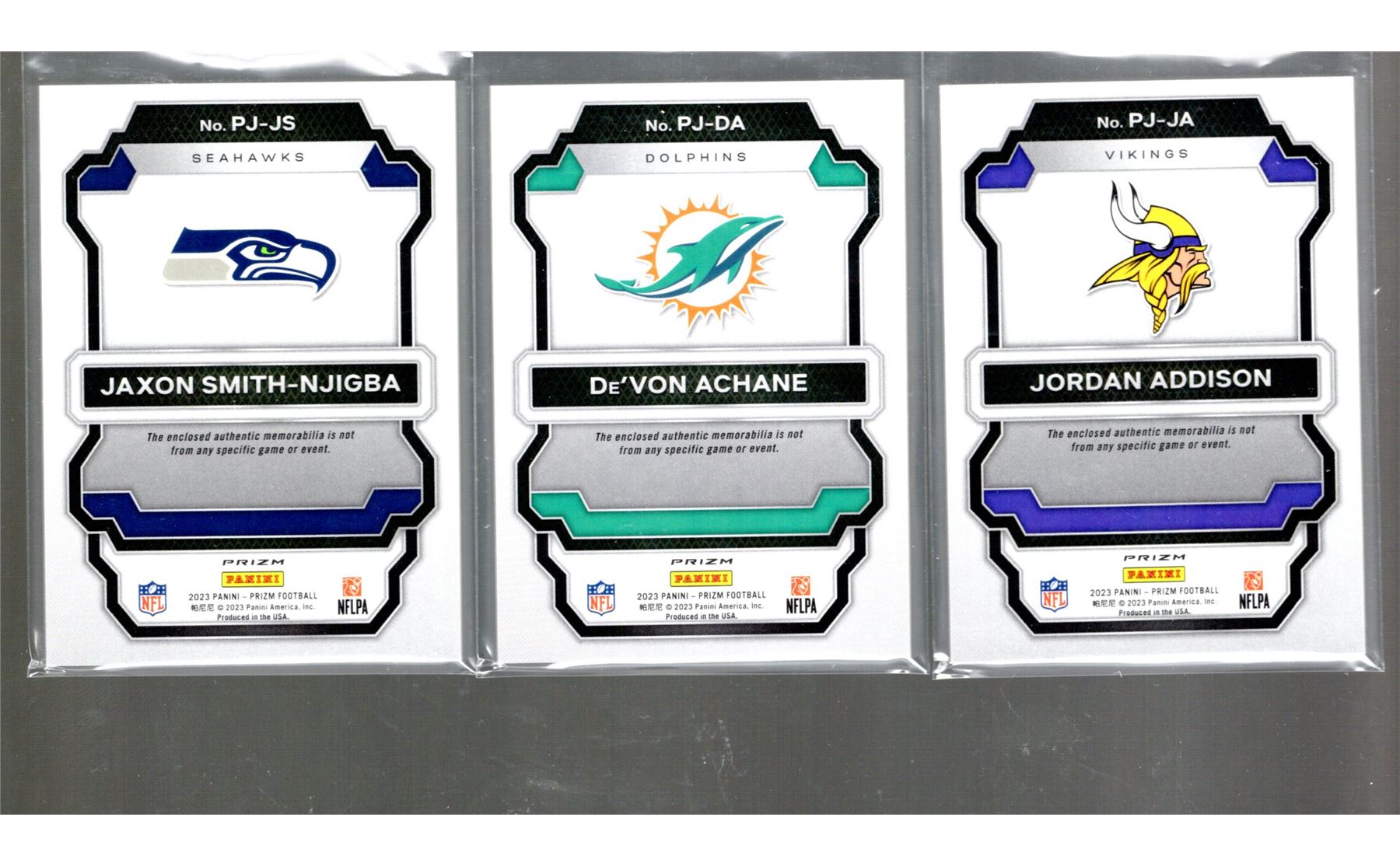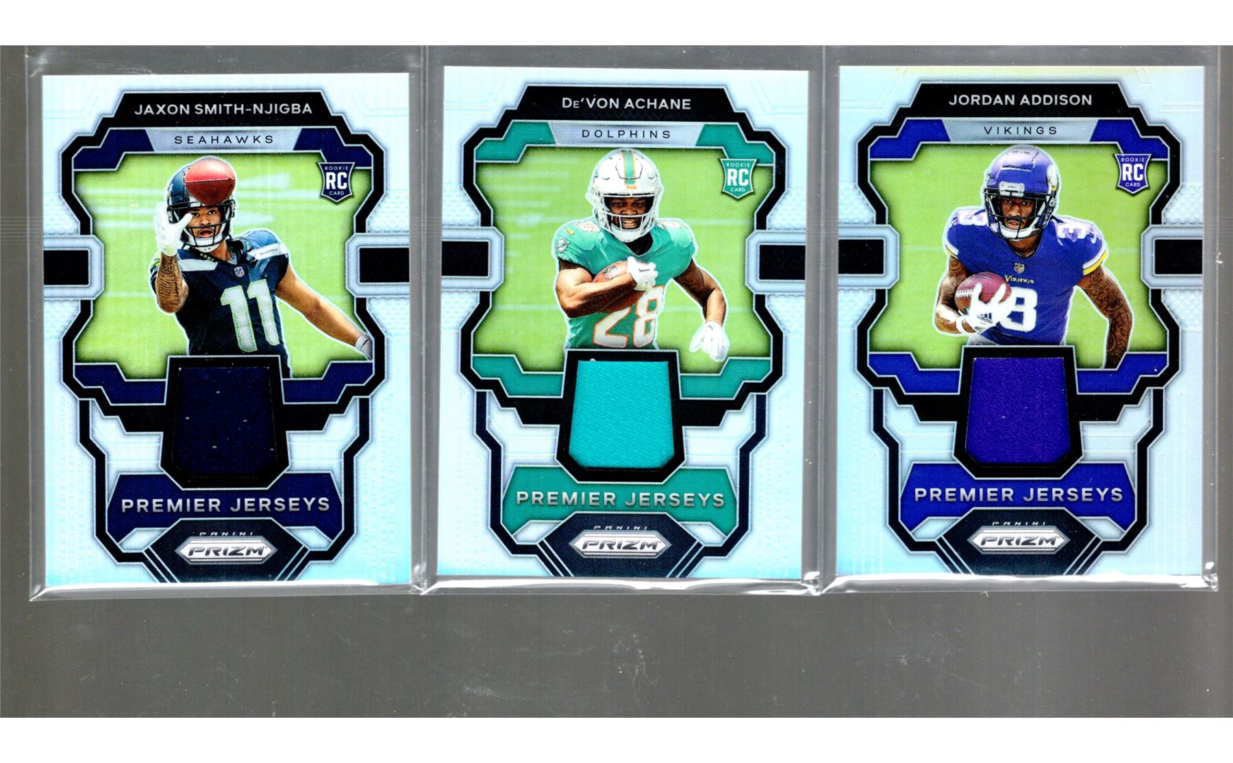 Lot of 3 Silver Prizm Premier Jerseys RCs. Smith-Njigba, Achane, Addison