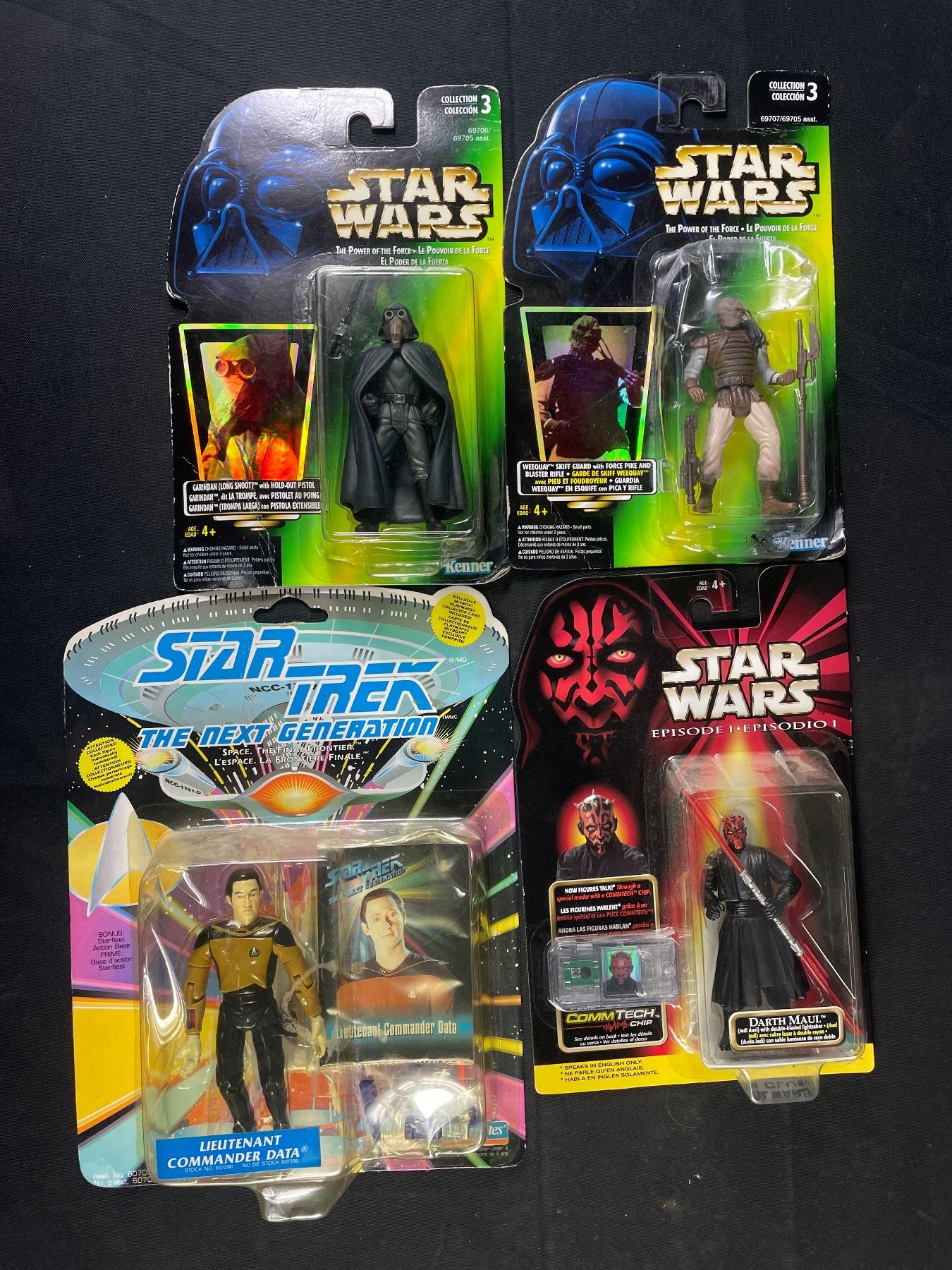 Lot of 3 Star Wars Action Figures, and 1 Star Trek In Original Packages