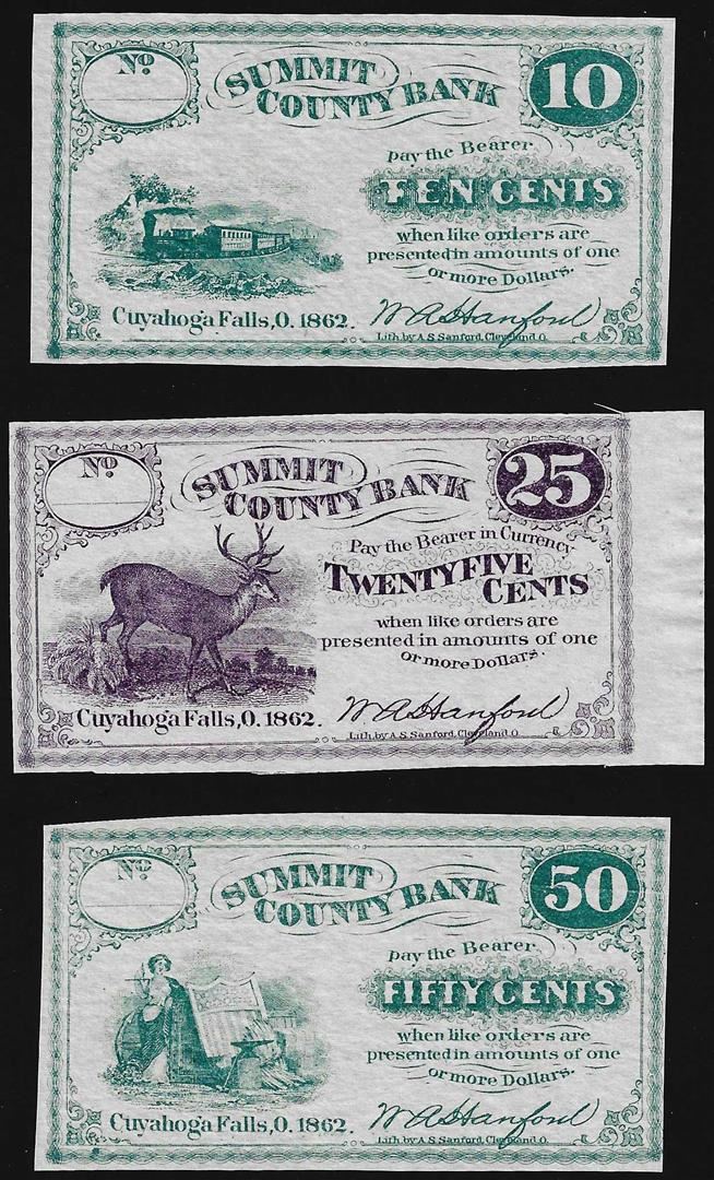 One Lot of (3) Summit County Bank Fractional Obsolete Notes.