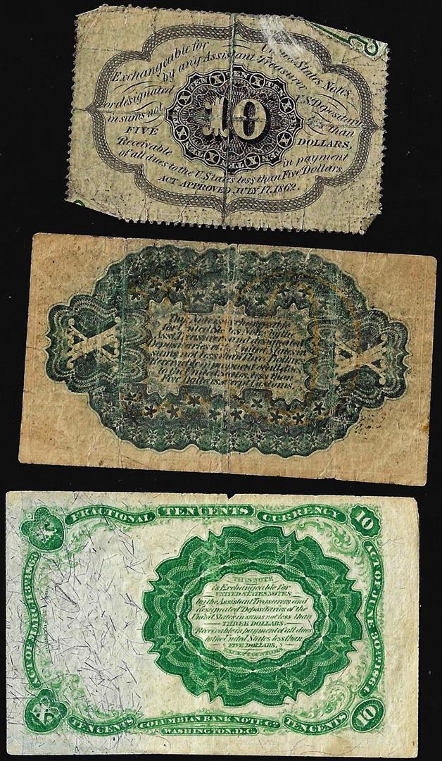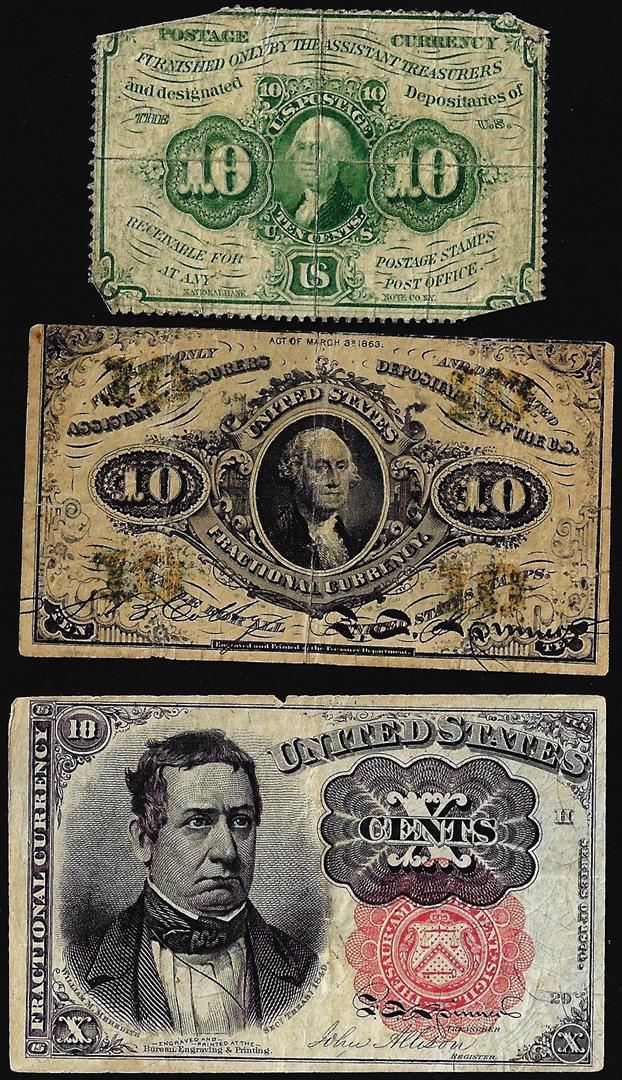 One Lot of (3) Ten Cent Fractional Currency Notes.