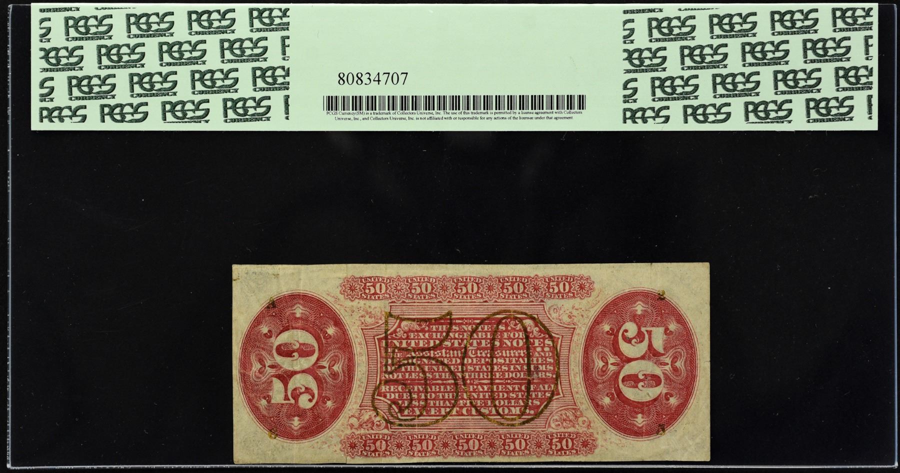 A bright trio of these red backed Justice notes with the following; Fr. 1347 in Choice About New 58 with the comments "Mounting Remnants and Minor Paper Scuffs on Back at Right."; Fr. 1349 in Choice About New 58 PPQ; Fr. 1350 in Very Fine 35.