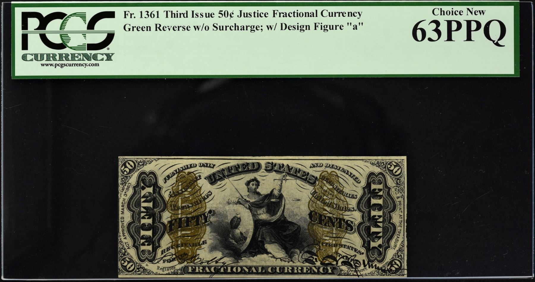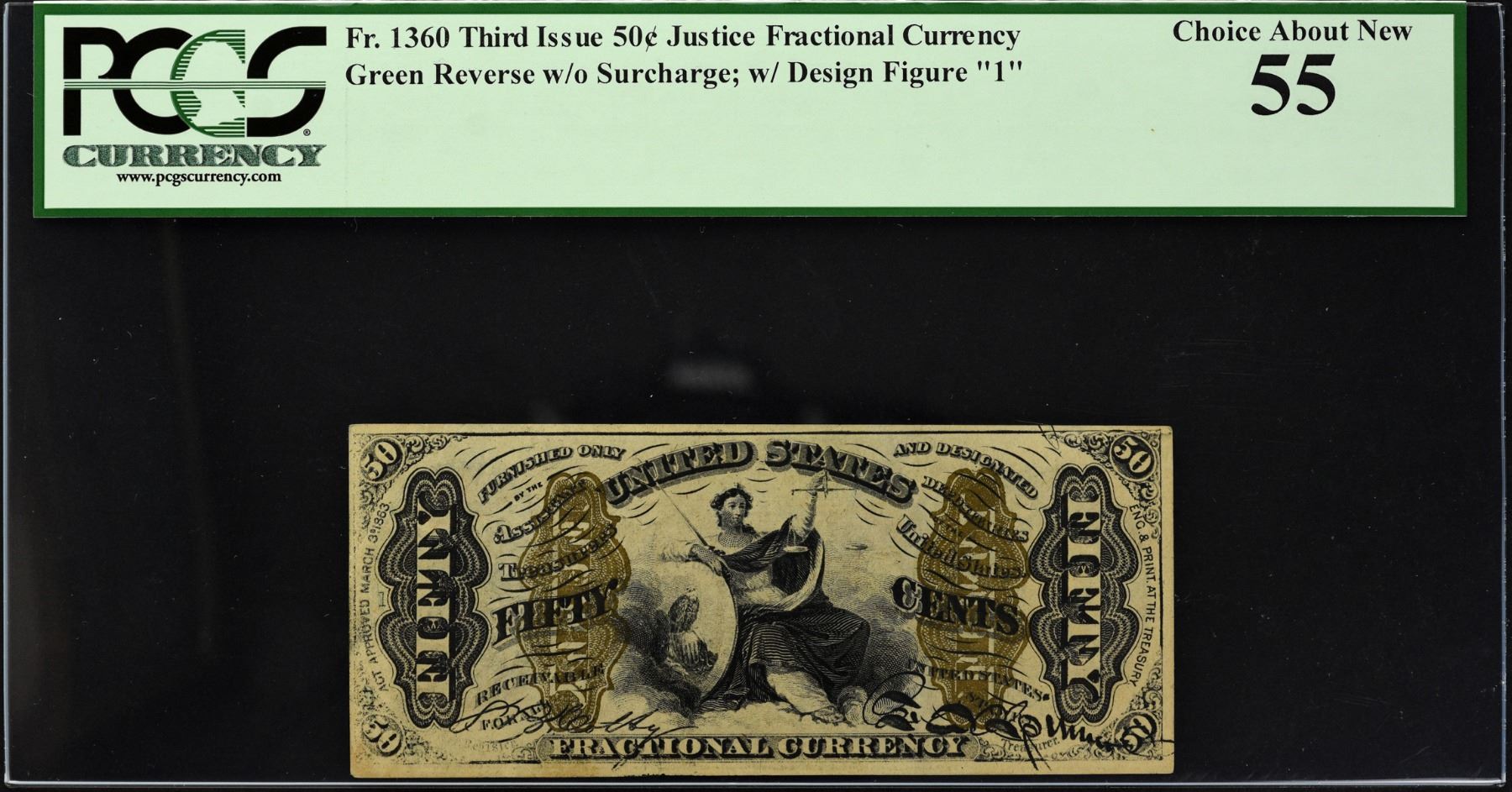 A trio of these non-surcharged green back types with the following; Fr. 1358 in Choice About New 58; Fr1360 in Choice About New 55; Fr. 1361 in Choice New 63 PPQ.