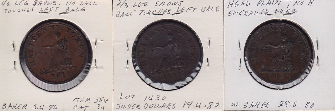 Lot of 3 Tiffin Halfpennies - Br 960, CH LC-48B, Tiffin Halfpennies, Courteau 25, CH LC-46A1, about EF; Courteau 26, CH LC-46A3, VF+; Courteau 27, CH LC-46A2, EF. 3 attractive Pcs. Courteau described 27 varieties of halfpennies with a similar design, with and without a reverse legend, and all have come to be known as Tiffins. However, if Joseph Tiffin of Montreal did import the well made examples in copper, Courteau nos. 25, 26, and 27, he was not responsible for the 24 imitation varieties in brass and copper, Courteau nos. 1 to 24, which were issued many years after the date 1812 which appears on them and may have been struck locally. 3 Pcs.