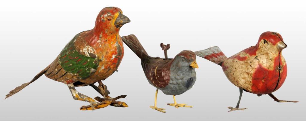 Description German. Working. Largest toy shows the most paint loss while smallest toy is in excellent condition. Condition (Very Good). Size Largest: 9" L.