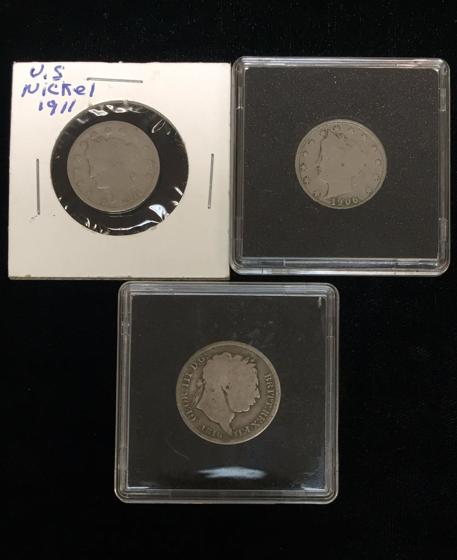 Lot 175 Lot of 3 - US Five-Cents 1906 and 1911, 1816 UK Sixpence Silver