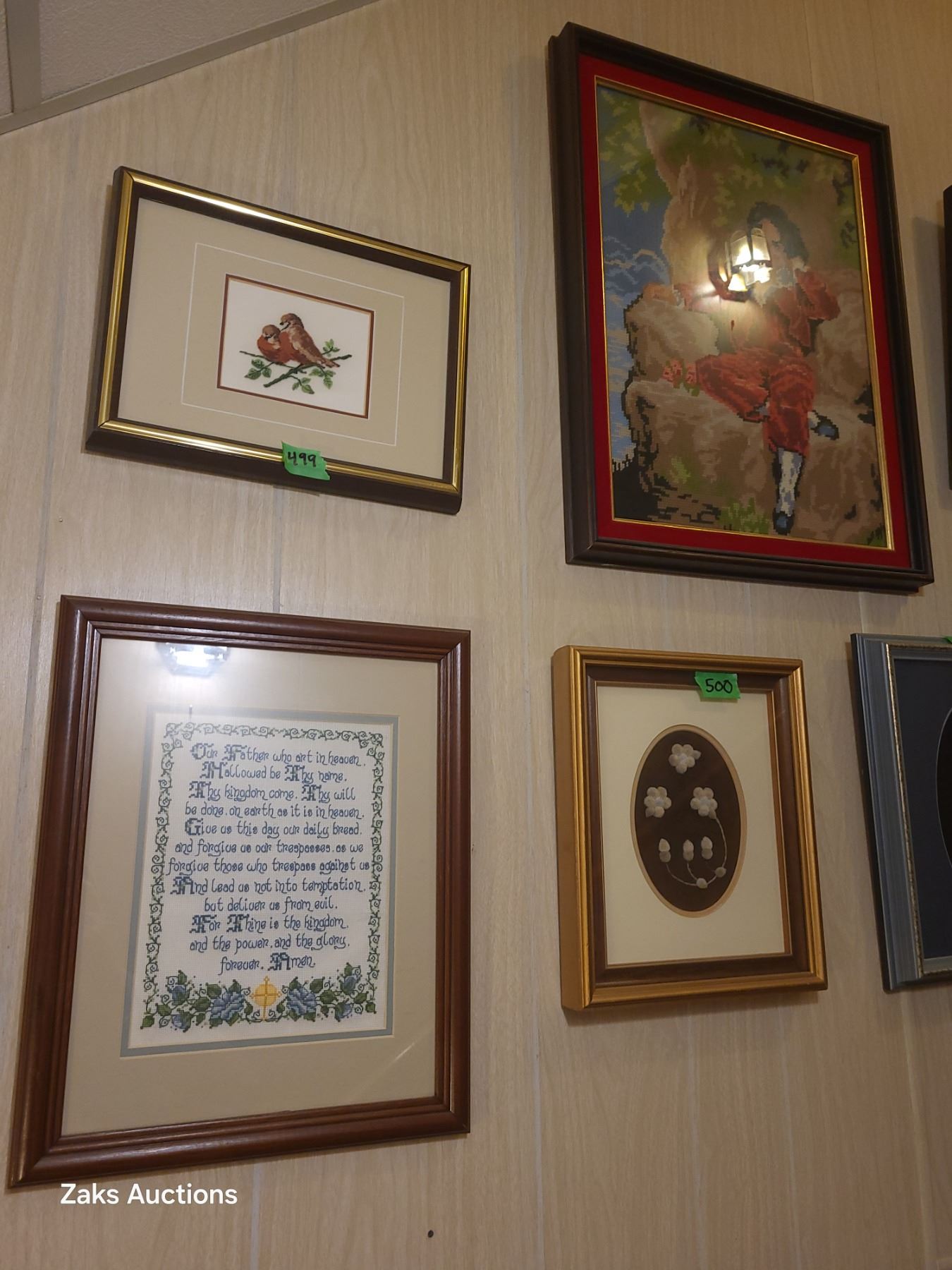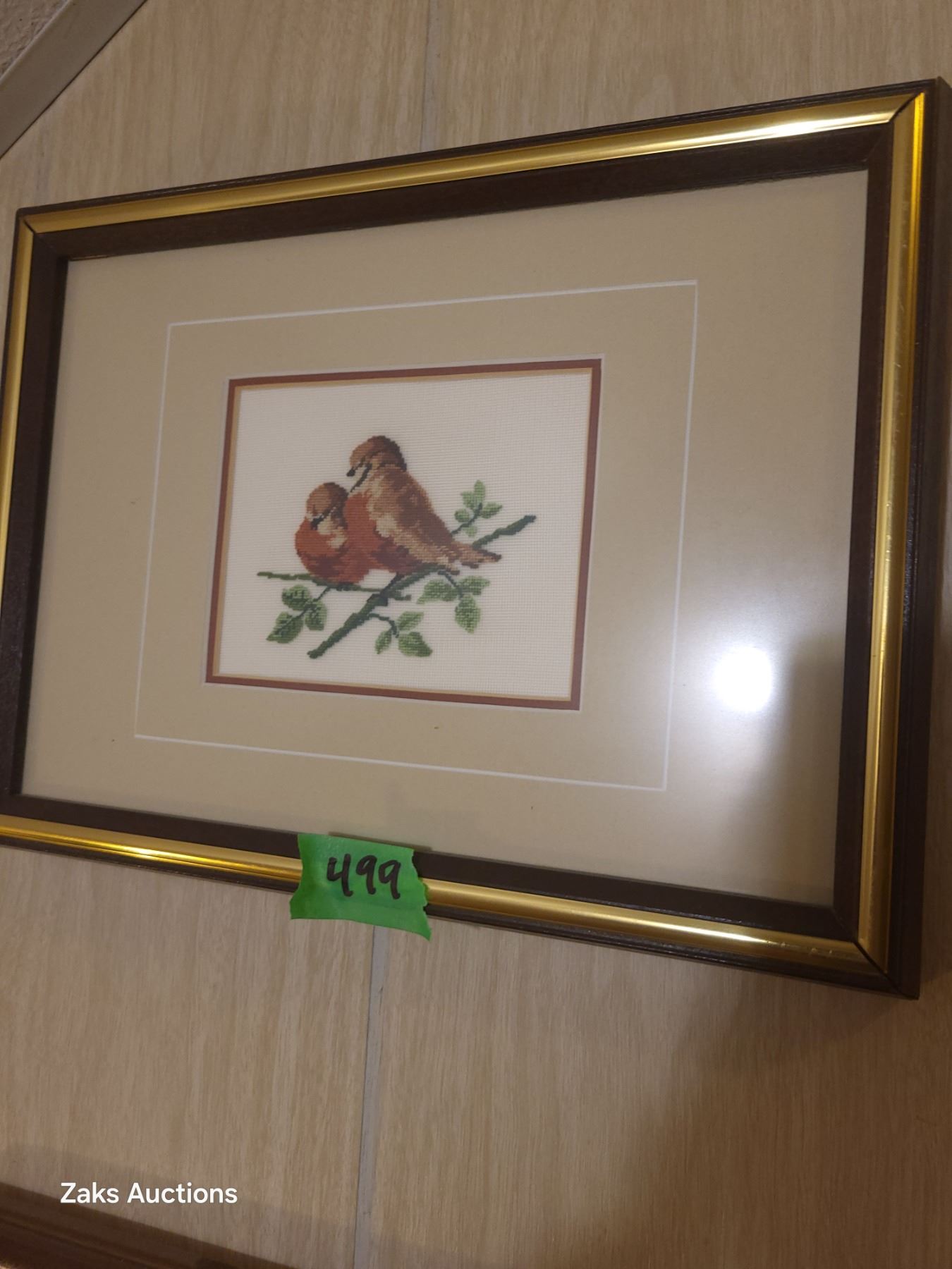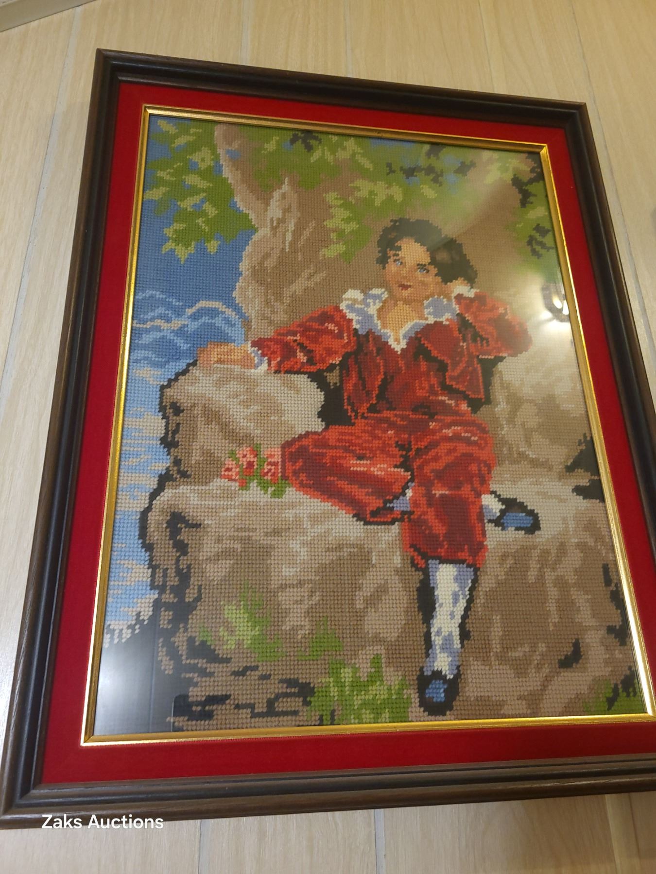 Lot of 3 Vintage Embroidered Needlepoint Framed Pictures