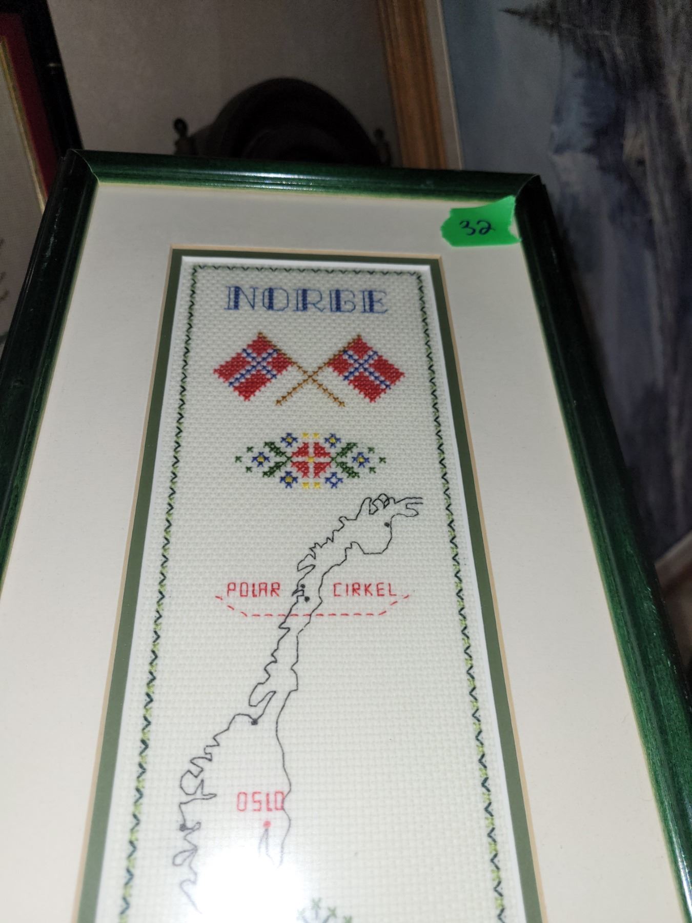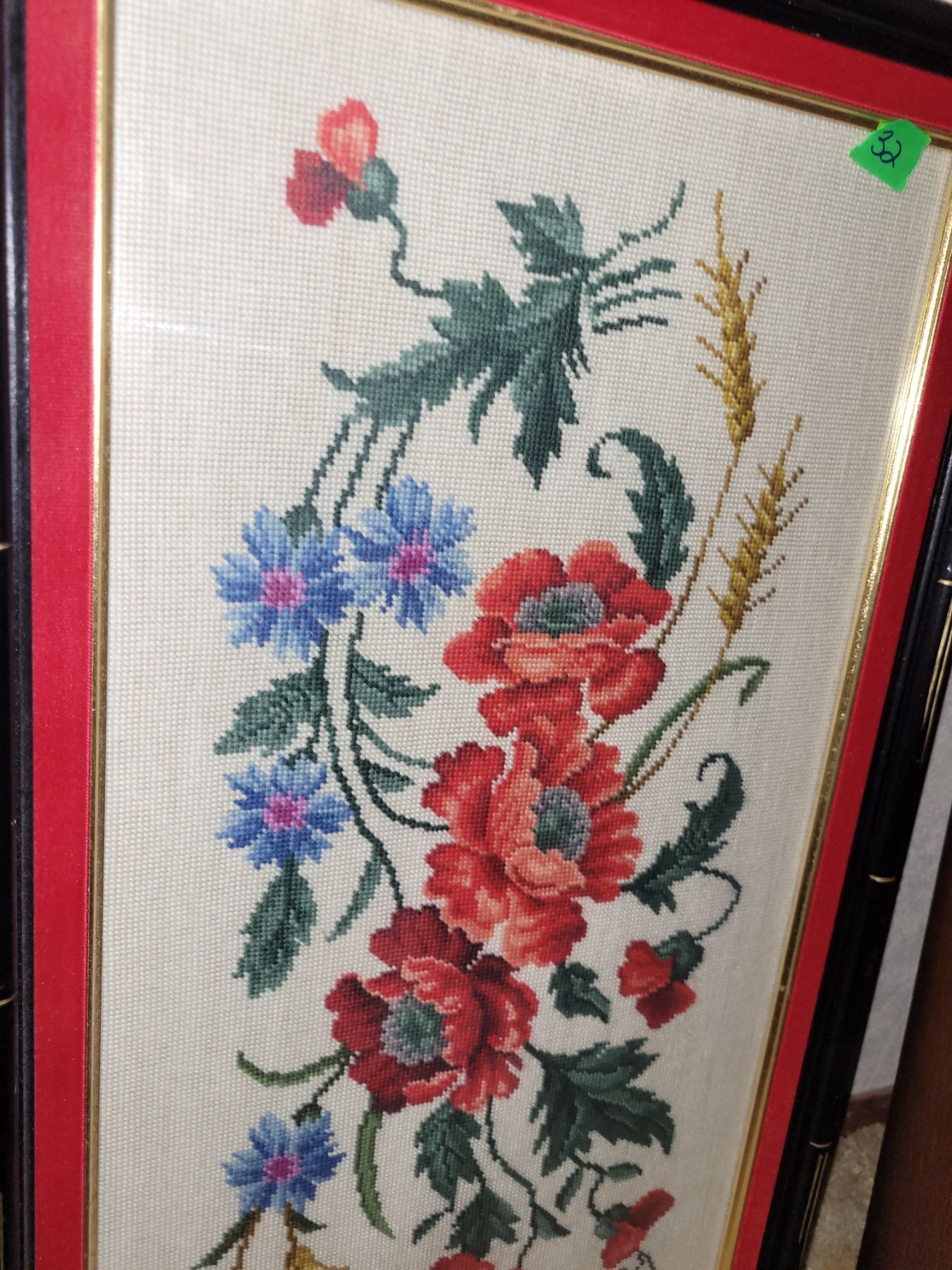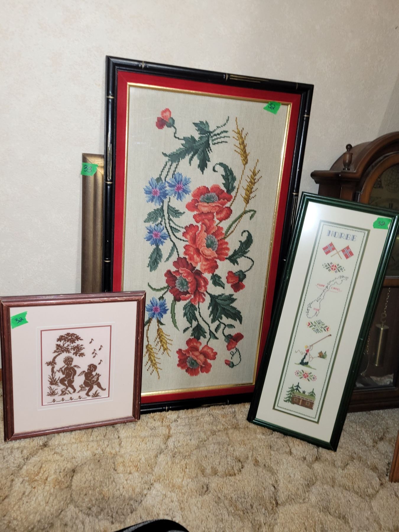 Lot of 3 Vintage Embroidered Pictures; Left to right - Measures 8x21.5" 11x12"; 16.5x29.5"