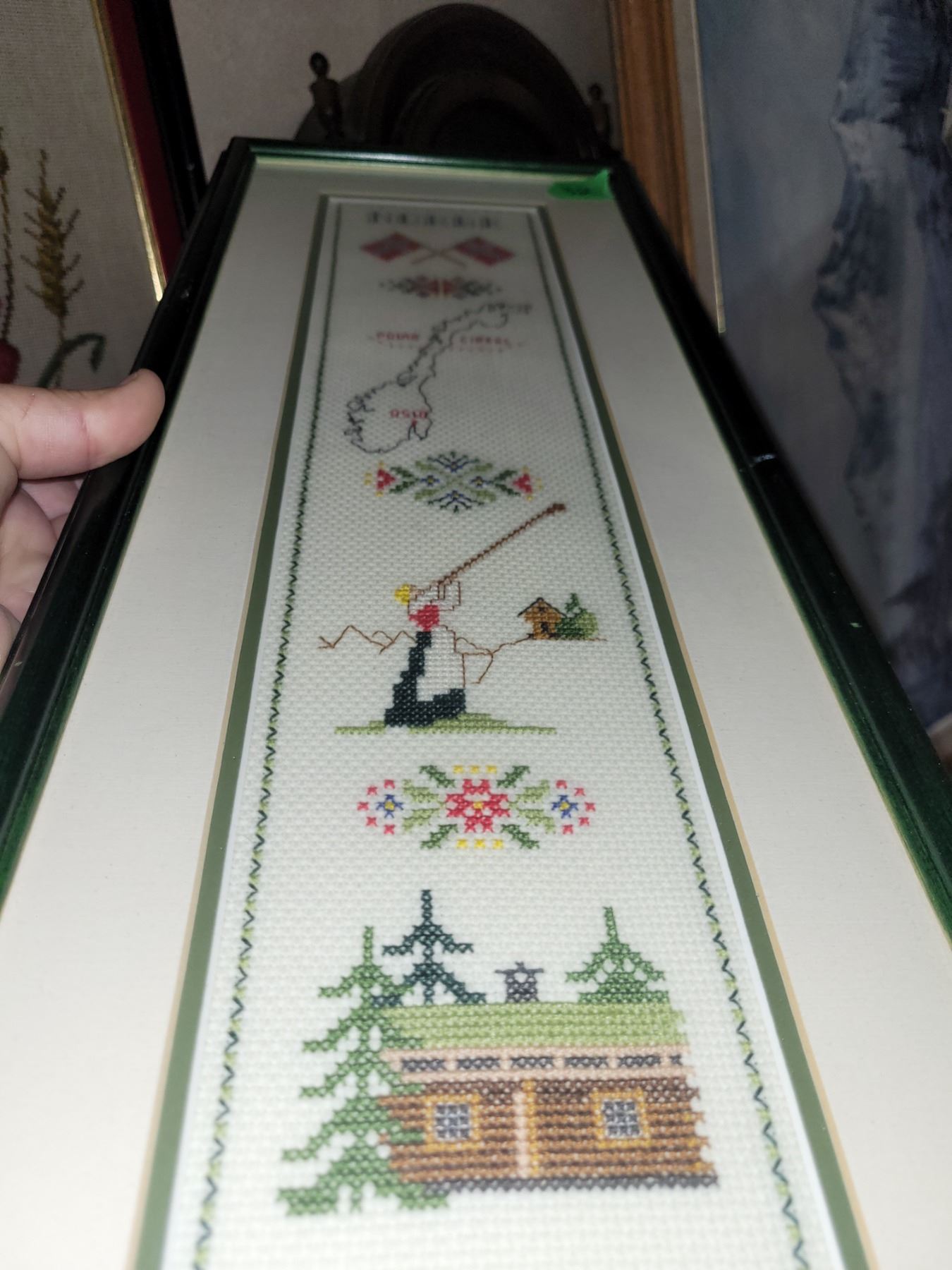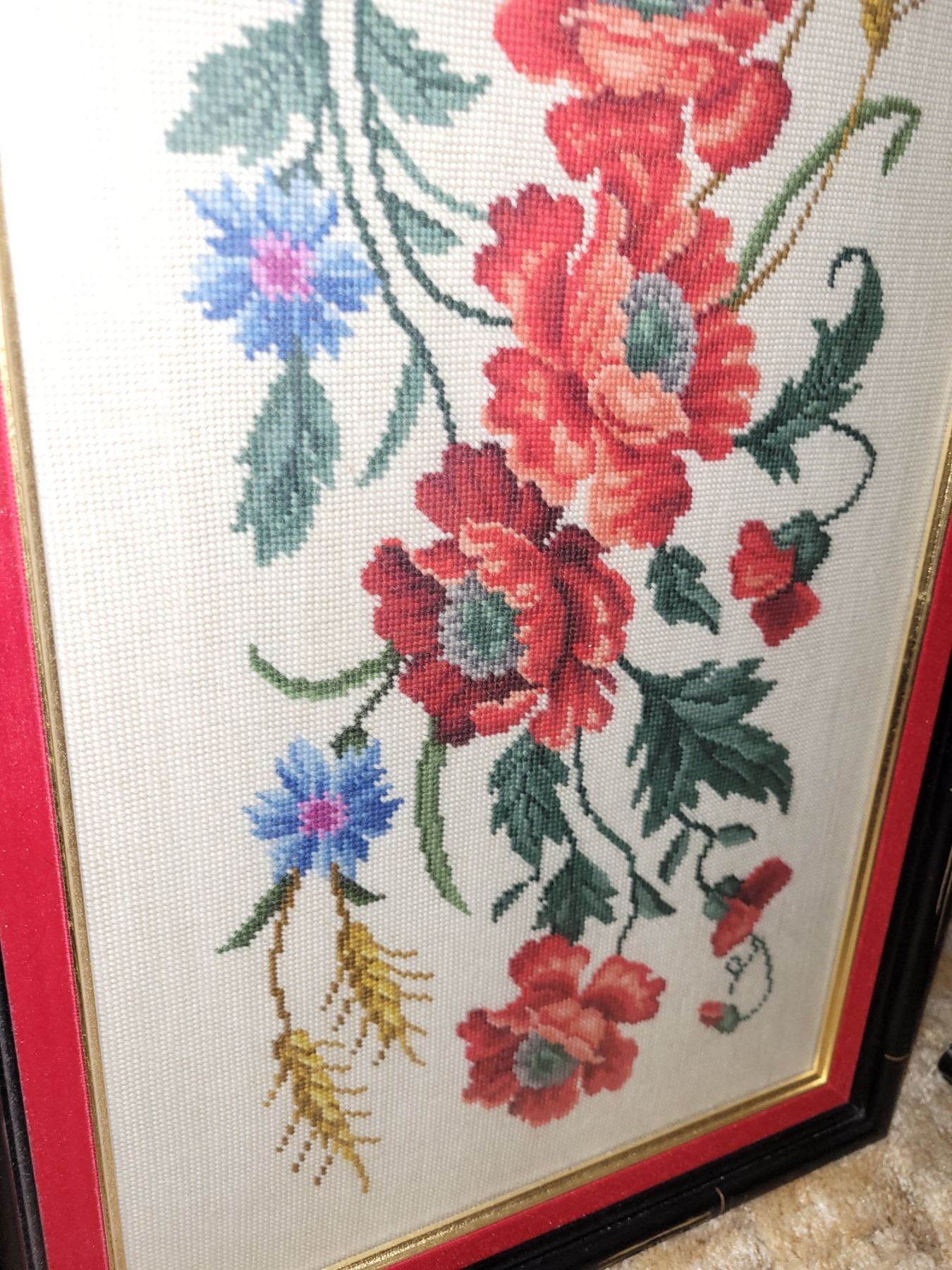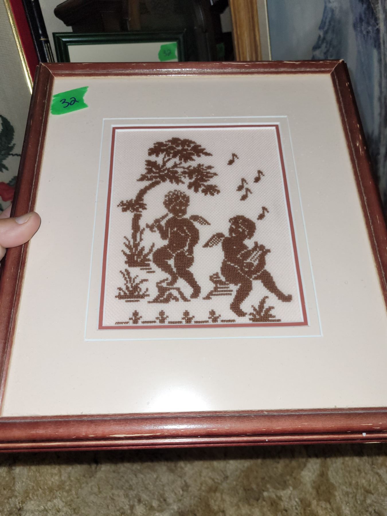 Lot of 3 Vintage Embroidered Pictures; Left to right - Measures 8x21.5" 11x12"; 16.5x29.5"