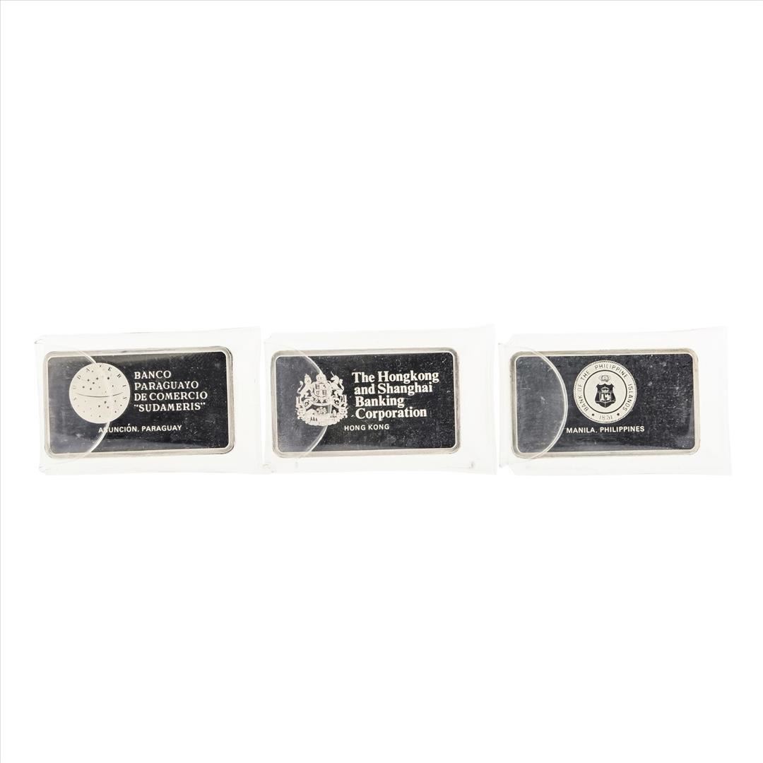 Lot of (3) Vintage Franklin Mint World Bank Silver Bars. Each Bar is 1000 grains or Sterling Silver which is approximately 2 troy ounces of silver.